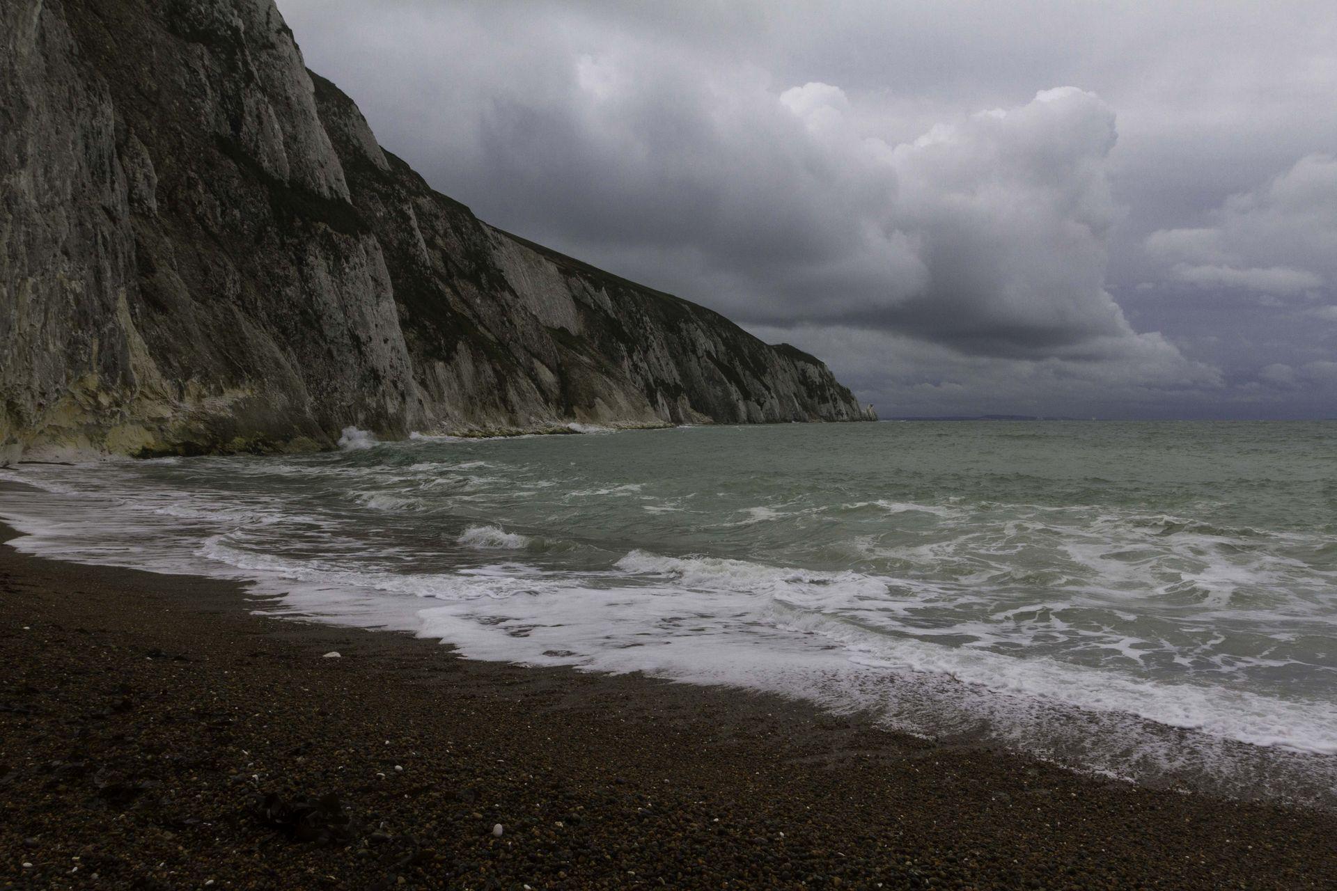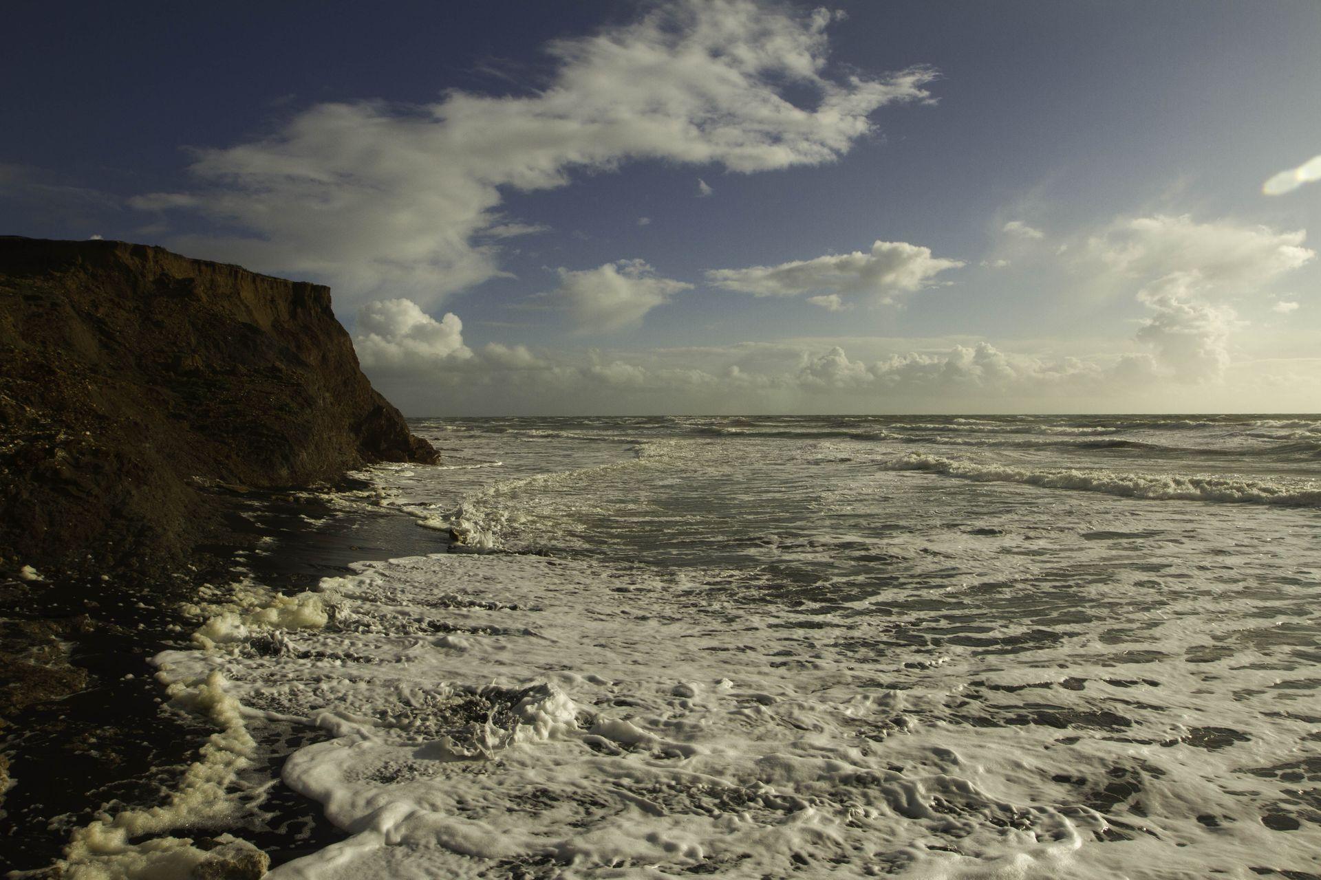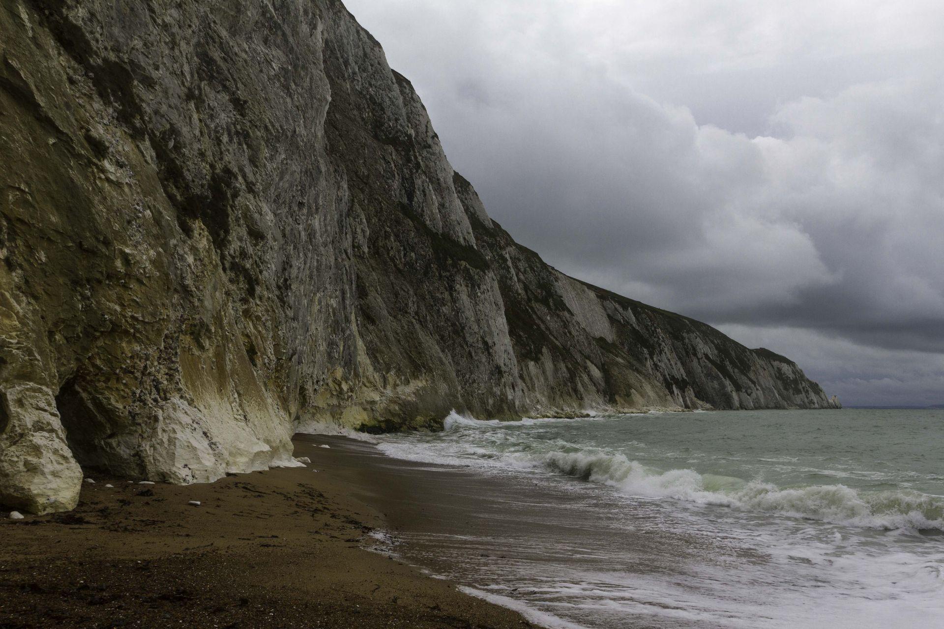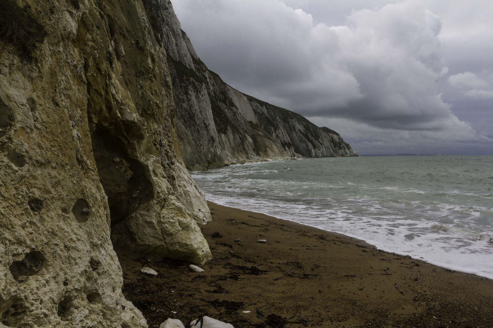 The views along the coast from Compton Beach are rather lovely, as the surf laps against the cliffs.