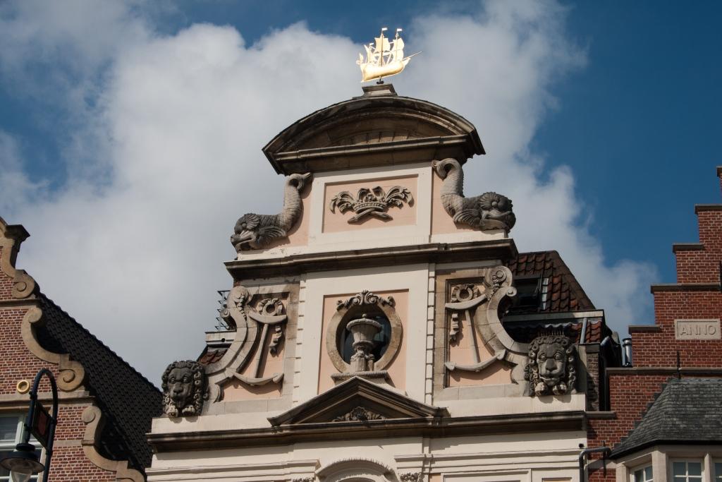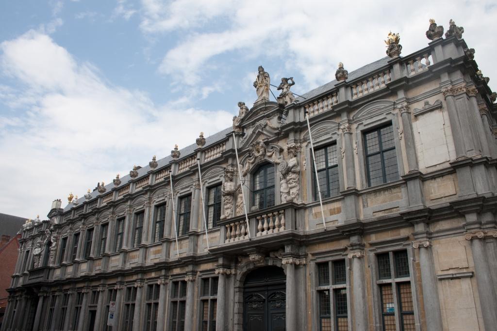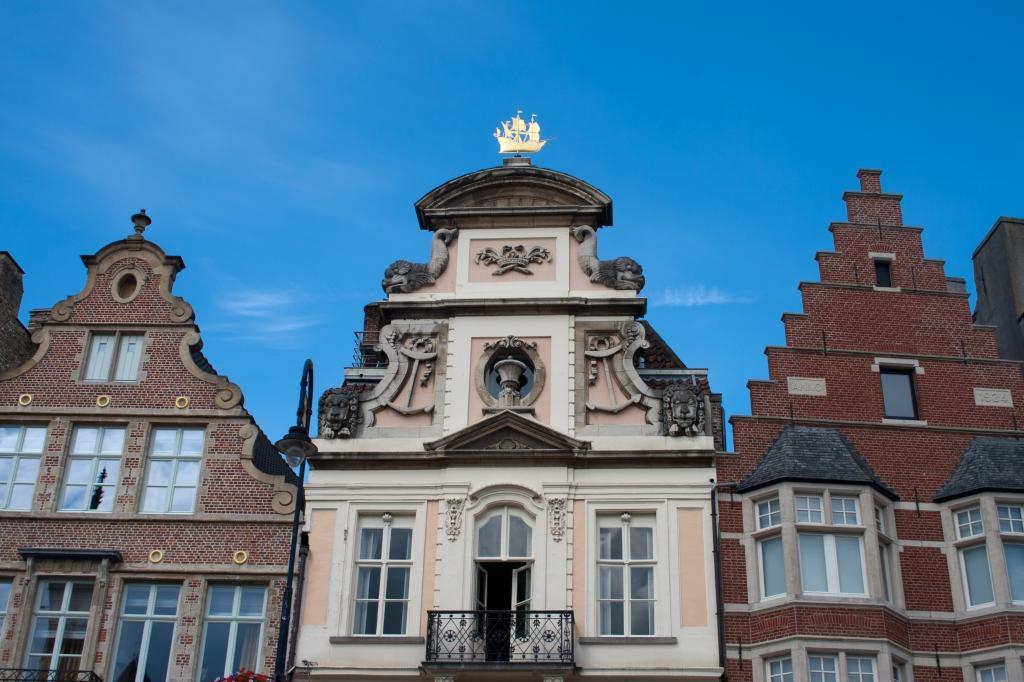 Apparently the fish on this building of the Guild of the Unfree Boatmen (non-Ghent boatmen) were supposed to be dolphins, however the sculptors had never seen a dolphin, so these were their best guess.