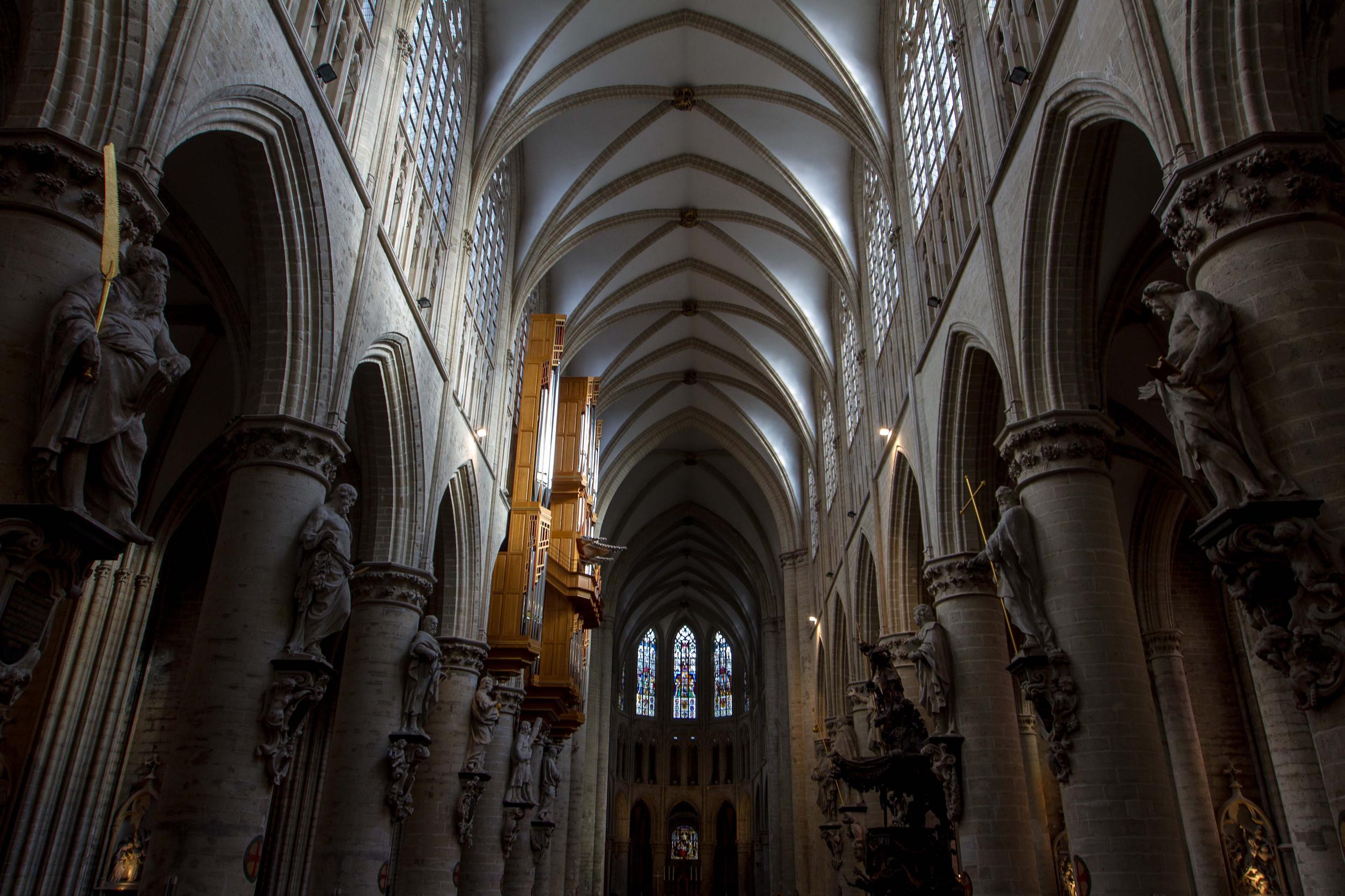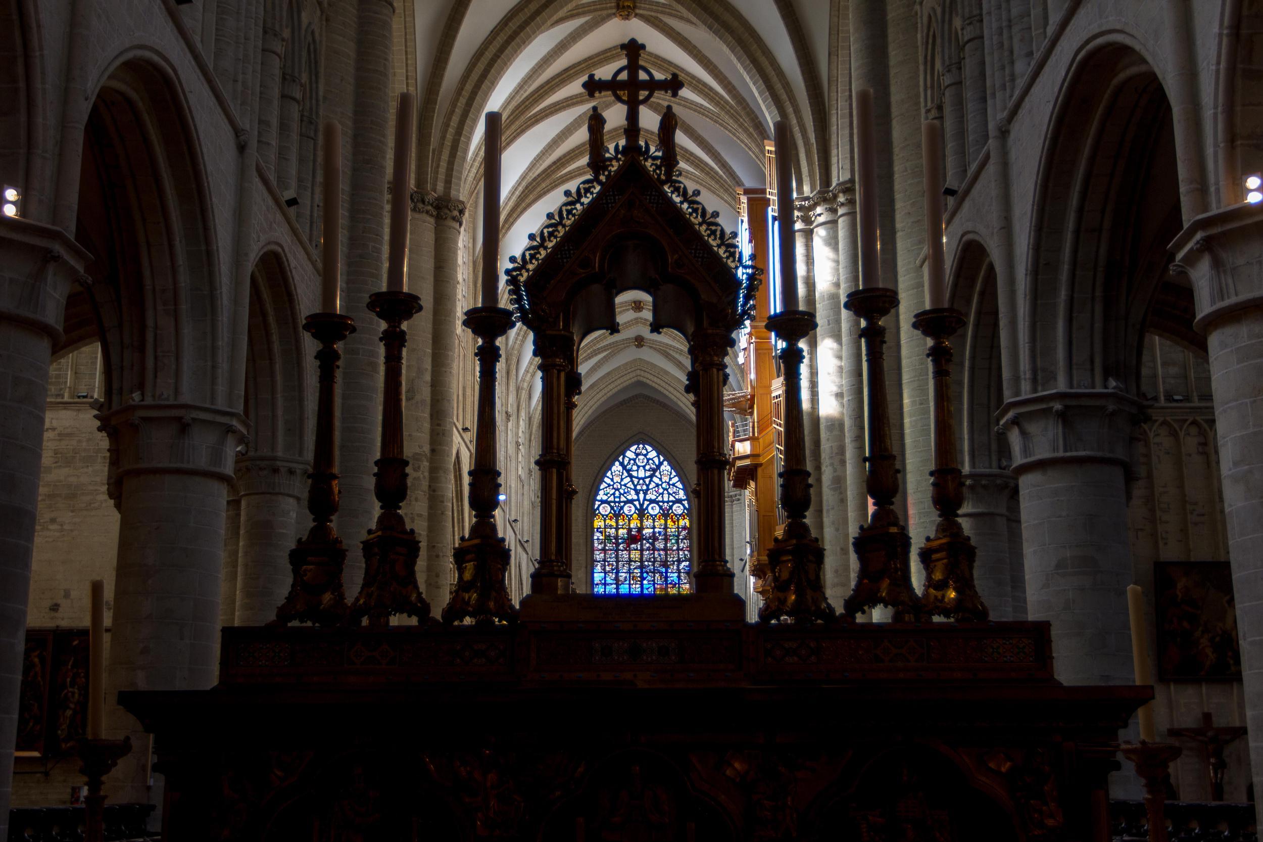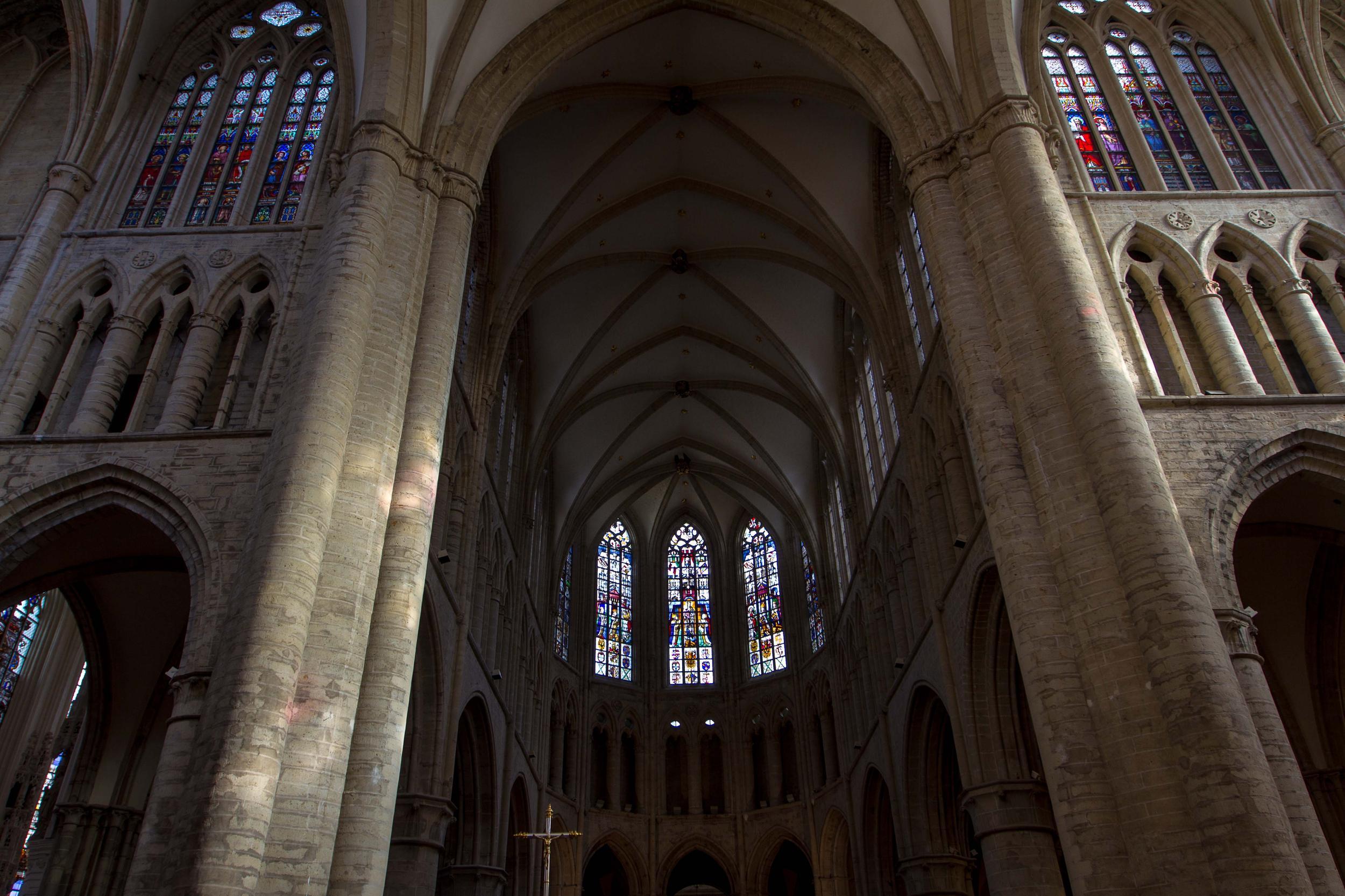 The Cathedral in Brussels is impressive in its grandeur, as well as serenity, architecture and stained glass windows.