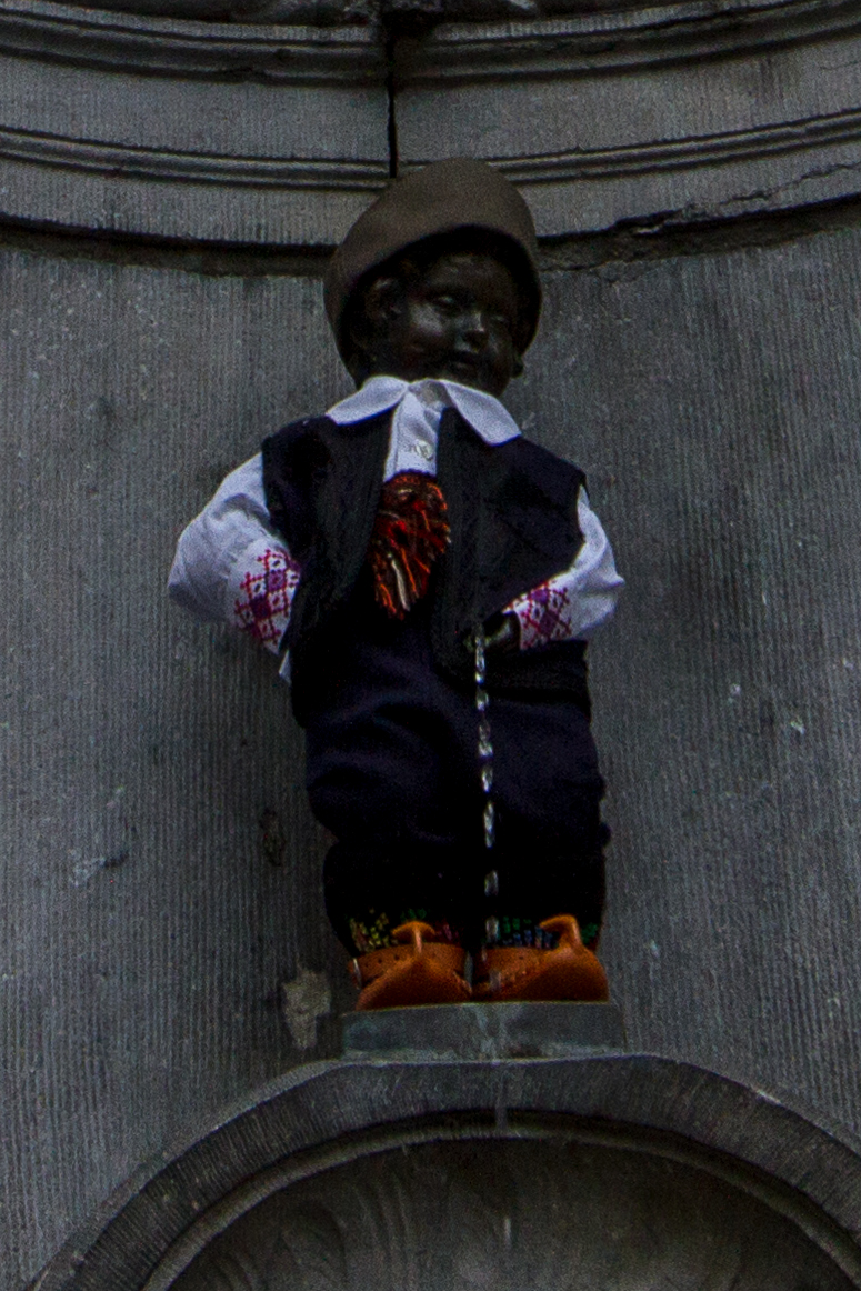 There is no way of having a gallery of Brussels without having a selection of the Maneken Pis and the various recreations in Chocolate and outside waffle shops. I don't know why he was dressed up one day, whether it was for a particular occasion of what.