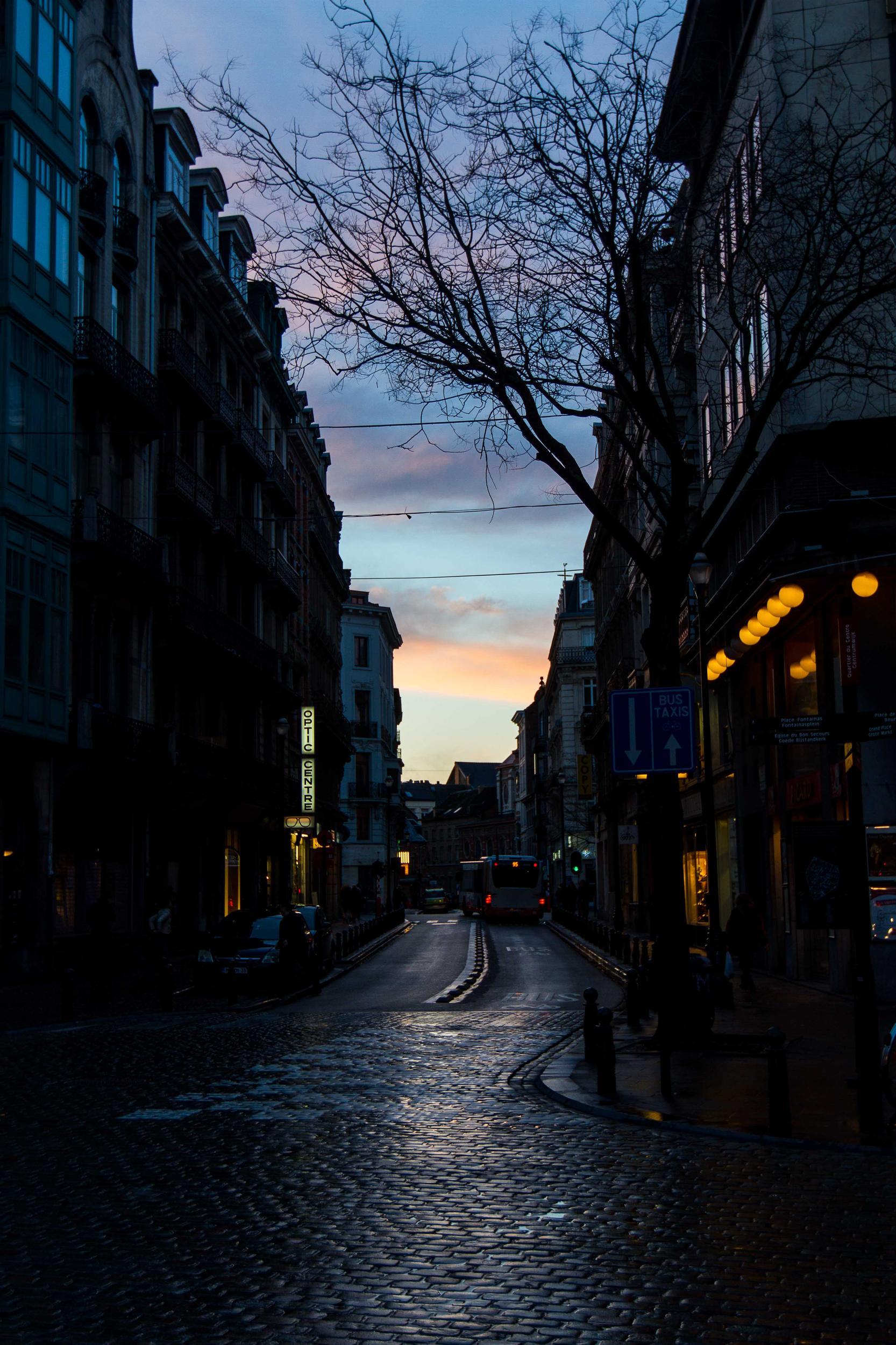 The streets were pretty at twilight.