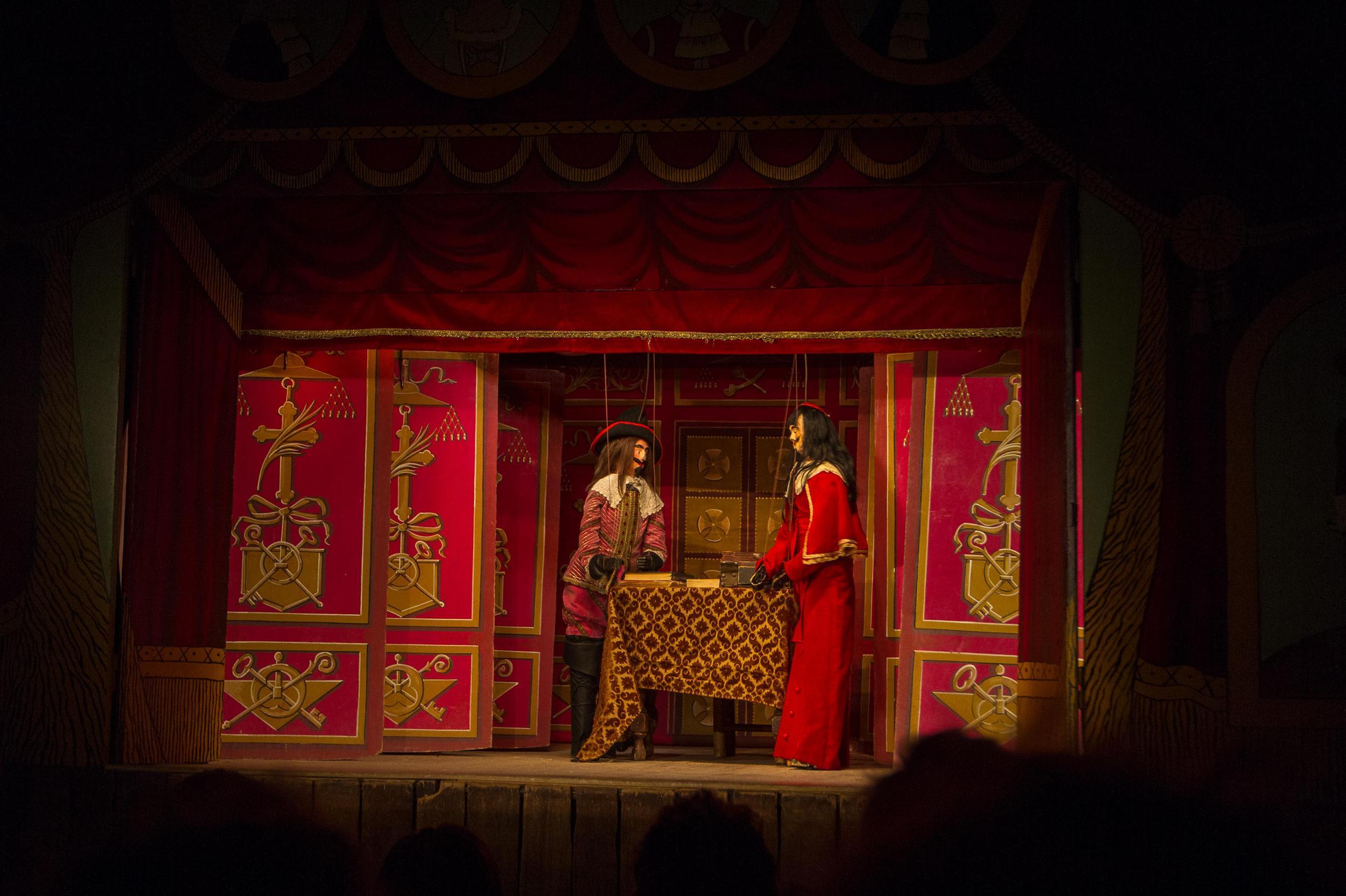 Somewhere we stumbled upon, initially as a nice spot in which to have a beer, was the Toone marionette theatre. We went to see their performance of The 3 Musketeers, which was amusing and freaky in almost equal measure. The theatre and bar are surrounded by the marionettes, hanging around as though an overzealous hangman has been doing some extra work.