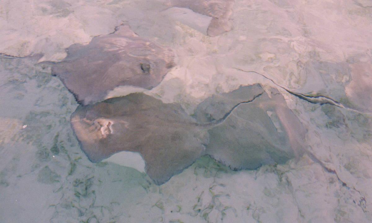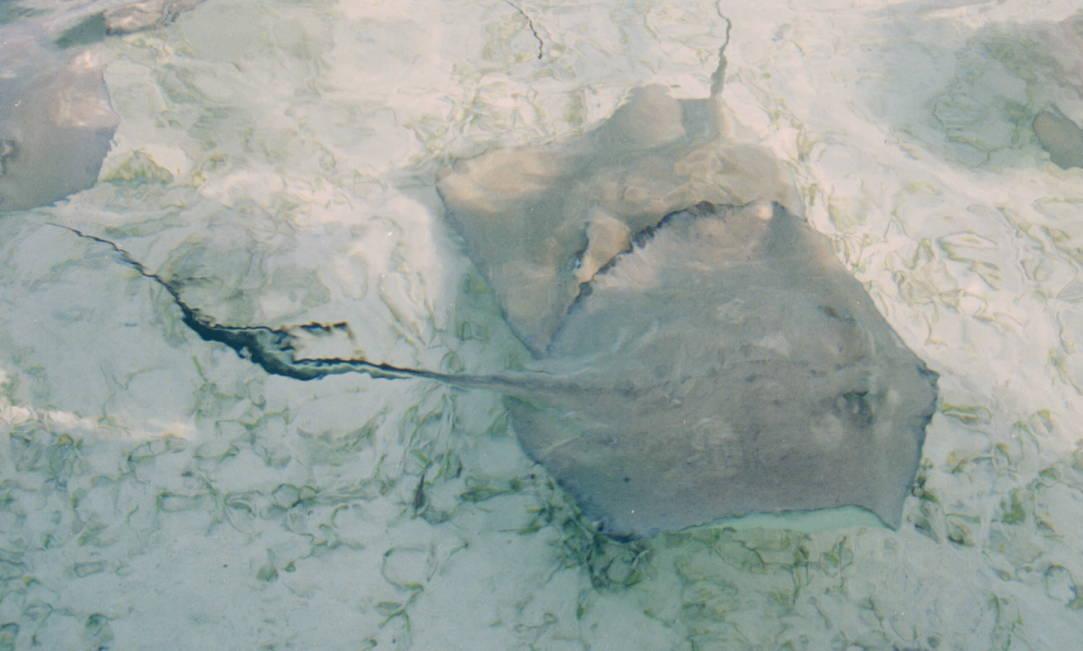 Belize is one of the few places left where one can see manatee in their natural environment. I was lucky to see this one (photo 1) up close and as my mask was on the boat it was possible to hang over the side of the boat with the mask on and see the manatee swimming and grazing underwater. I went snorkeling in a couple of shark-ray alleys. These are areas where the fisherman en route back to Cayes Caulker and Ambergris throw fish guts and other fish waste in to the water. The various fish particularly rays and sharks hang around the area and have become quite relaxed. This meant that we could snorkel up close to them and free dive and swim along with them a bit underwater. There were various types of rays and other fish, but the only sharks we saw were nursing sharks. As can be seen from the photos below the water was crystal clear.
