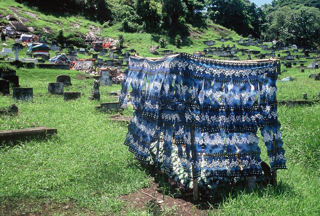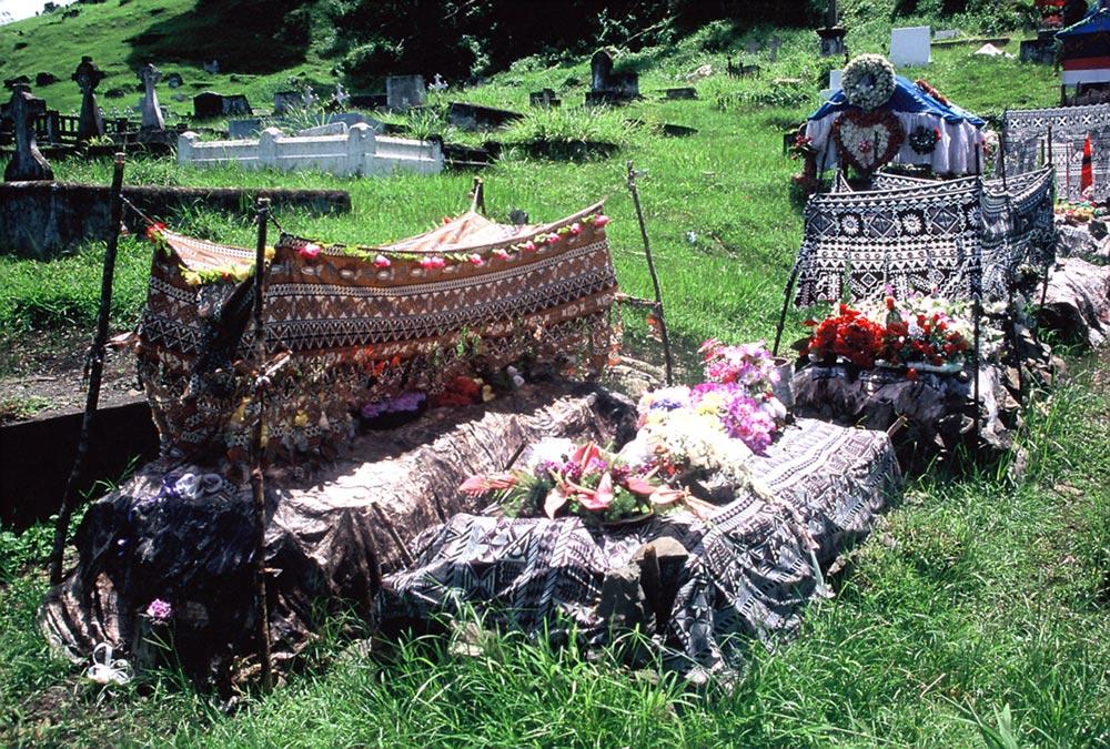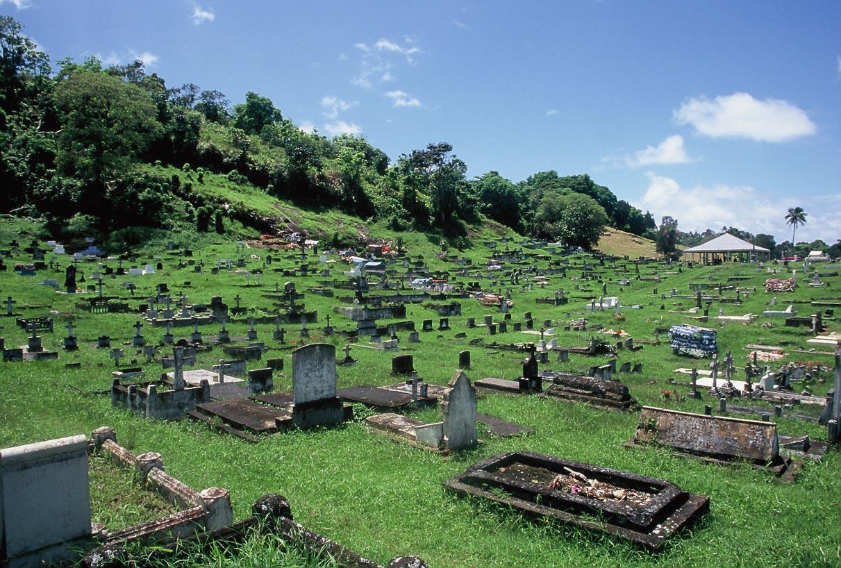 Viti Levu is often referred to as the mainland, though it is a large island. The cemeteries are actually maintained by the convicts from the local gaol. Many of the tombs are ornately decorated with curtain-like constructions around them (photos 1-3). When I visited the cemetery, there was a gang of prisoners there cleaning graves, mowing the grass etc. and all were very friendly. I went past the gaol itself, a less flamboyant affair. The murals on the front wall were interesting, though the appearance of the place as a whole was a good reason not to get put away in Fiji (photo 4). Reprobates of a different kind can be found in the government buildings (photo 5), where people are often playing cricket on the fields in front.