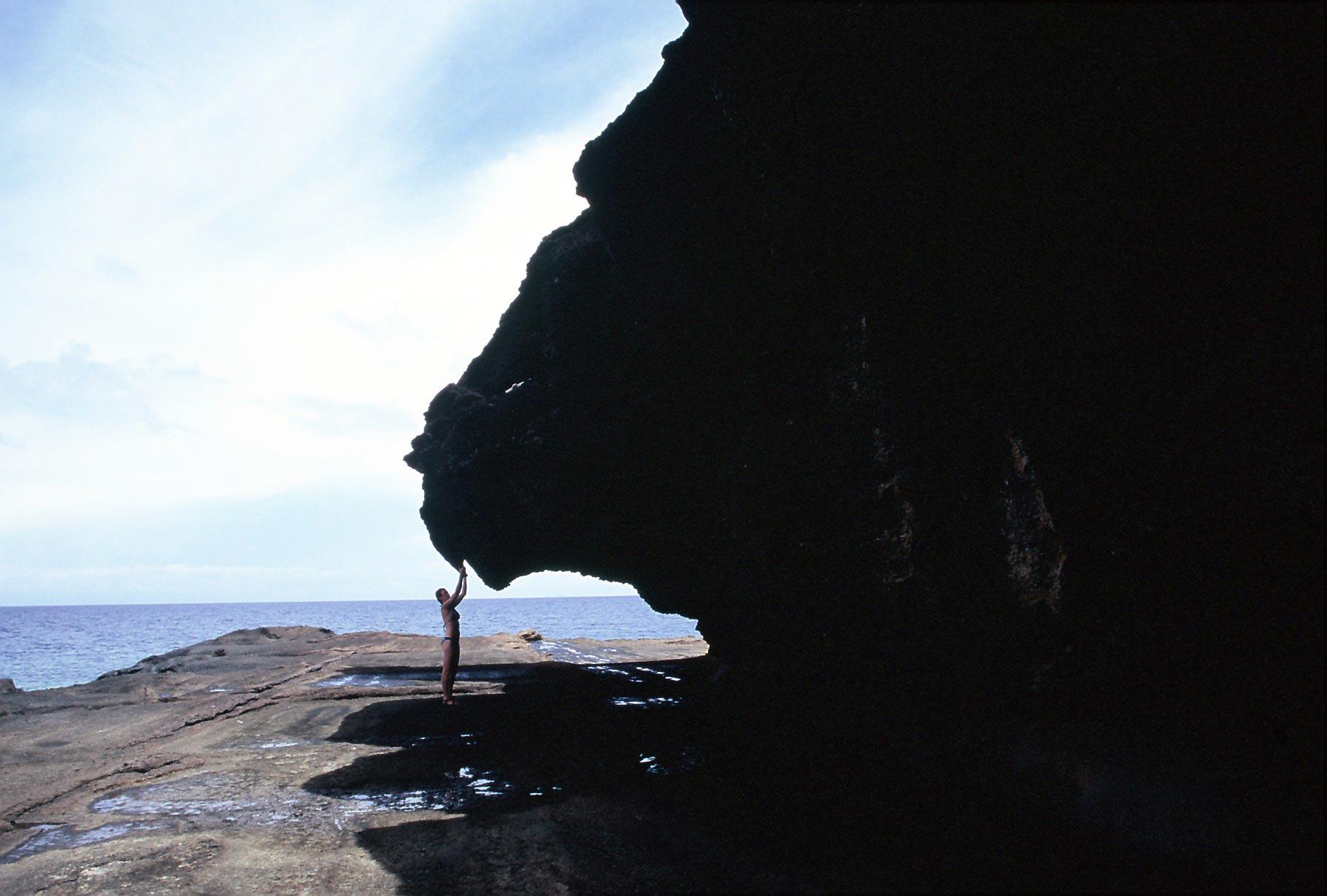 One day, Erin and Daniel decided to come with me on my round island walk. The walk turned out to be a bit disastrous, mistimed to the tides, we ended up having to scale precipitous rocks and other encumbrances before we were finally given a lift back to where we were staying. Erin decided as we were going along that she would hang off an overhang in her bikini. I think it is something to do with being American, though it could have just been a unique peculiarity she had.