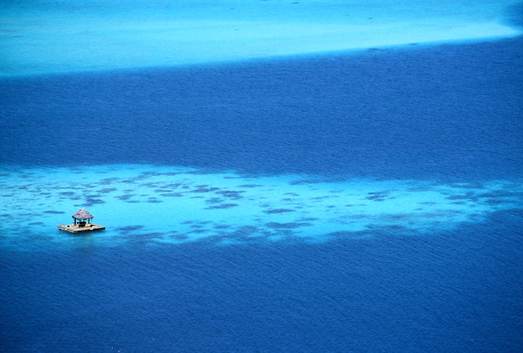 Bora Bora has become a must visit island destination for the glitterati. It is not only celebrities and millionaires that holiday there, though the role call at Bloody Mary's is quite an impressive list. I like to think that Kareem Abdul-Jabbar and Michael Heseltine turned up for dinner and drinks together, to discuss politics and basketball. Whilst at the table next to them, Quicy Jones was telling John Denver that his music was crap, David Copperfield and Rod Stewart fought over who had a bigger bouffant hairstyle and Rowan Atkinson pretended to be Stephan Grappelli's waiter who was being given musical instruction by Tommy Lee. Unlikely perhaps, but after a few drinks all sorts of things could happen. I was thinking that Jane Fonda could have given Marlon Brando work out tips, though he probably would have decked her.Anyway, Bora Bora is a lovely looking atoll and would be a hell of a lot nicer if someone demolished the majority of the resorts and hotels there. They are an eyesore and almost as environmentally unfriendly as the French government's habit of detonating nuclear devices in a porous hole. The over-water bungalows (photo 4) have had a devastating effect on views and the coral, killing masses of it and as a side-effect removing a whole section of the local ecosystem. I have no idea why there is a hut in the middle of the water, but there was and I thought it looked nice, so took a photo of it (photo 5).