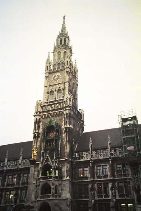 I have been to Germany a few times and never really enjoyed it. That could be due to the fact that I haven't been to the right bits, or simply because there always seems to be a damned good reason to get annoyed with the people. An example is that when I was in Munich with my friend of Asian extraction he and I were getting evil stares off the locals as well as nasty comments they thought we didn't we understand.These pictures show different buildings in Munich, firstly the town hall (or Rathaus, the house of rats), next a gate and finally a church with peculiar steeples.