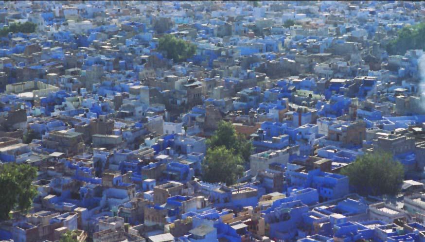The blue city of Jodphur (photo below) turned that colour because of a chemical treatmentused by most homes to get rid of turmites.