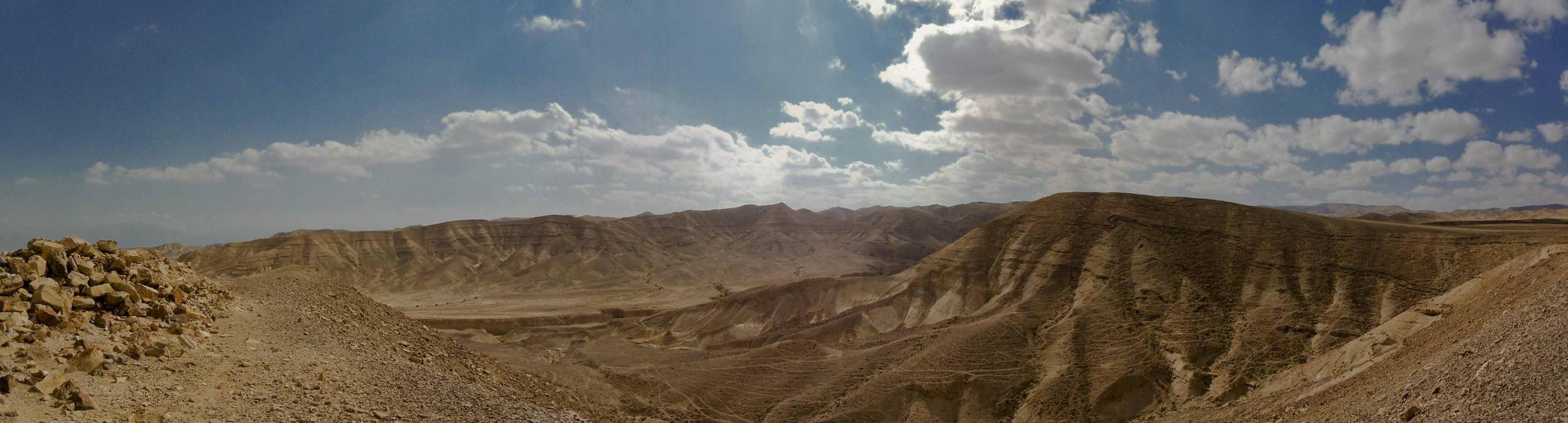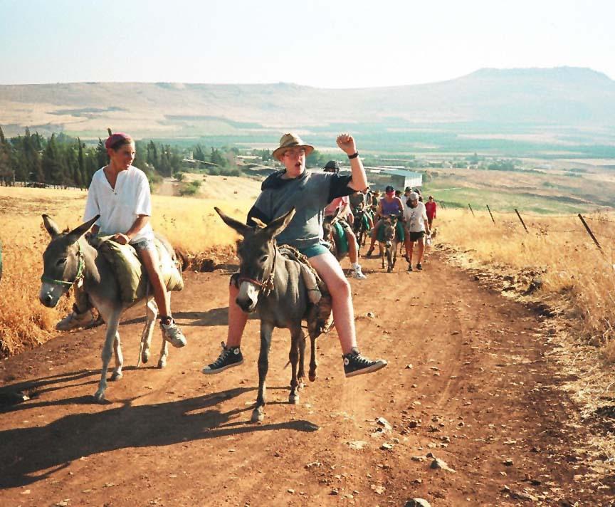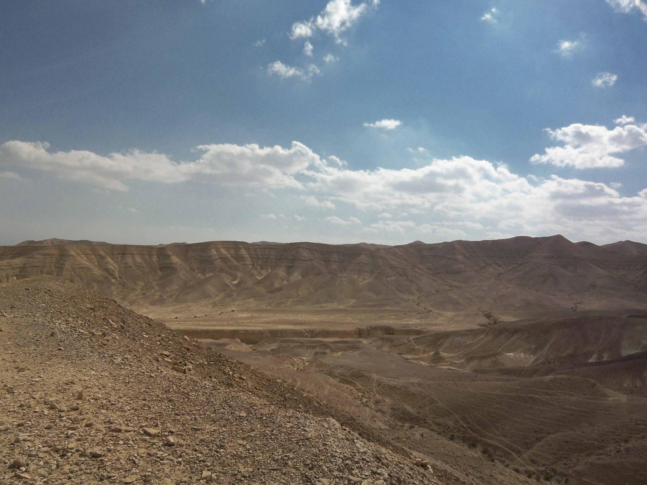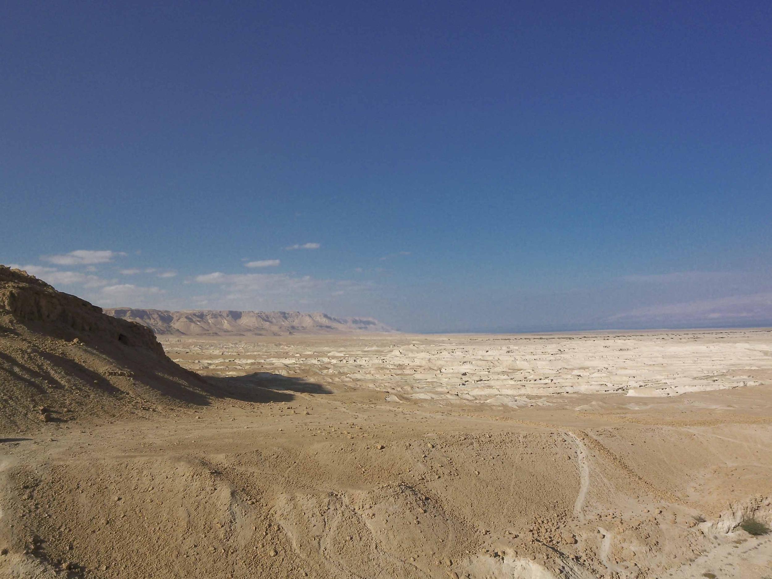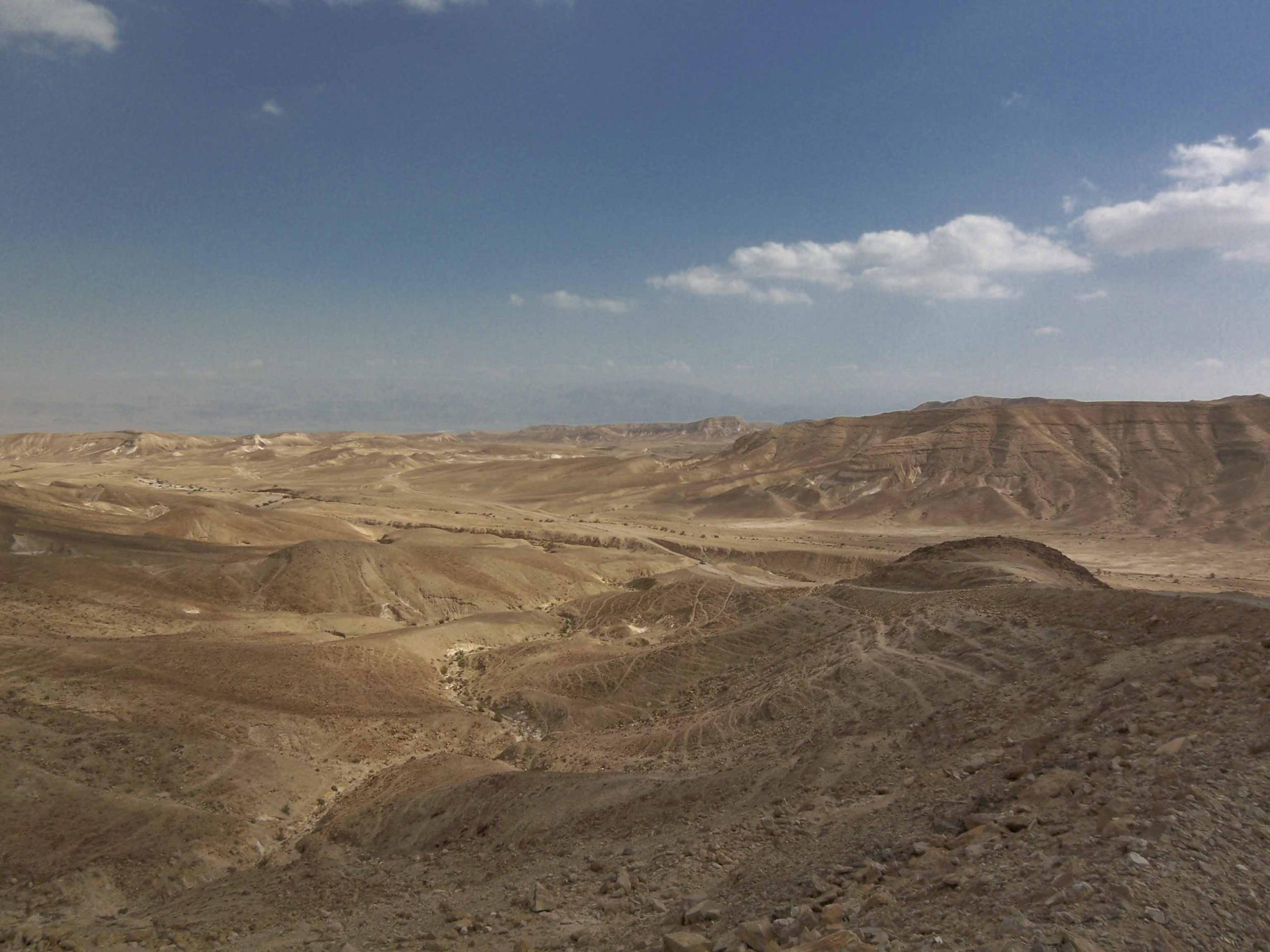 In the Negev desert can be found several interesting things. Firstly, Bedouins (invariably performing for the tourists) making the traditional coffee ceremonies. The Dead Sea, the world's lowest point on the surface. Famous for being extremely salt rich, so anyone can float. Be warned though not a good place too bathe if you have open sores or grazes, although it will clean them, they will sting like hell. Then there is Ein Gedi an oasis just next to the Dead Sea, where there are some nice waterfalls and Ibex can be found. Also if you are lucky you will come across a sixteen year old Englishman wielding an M-16 whilst riding a camel. Or perhaps come across the same person riding a little donkey up a mountain.