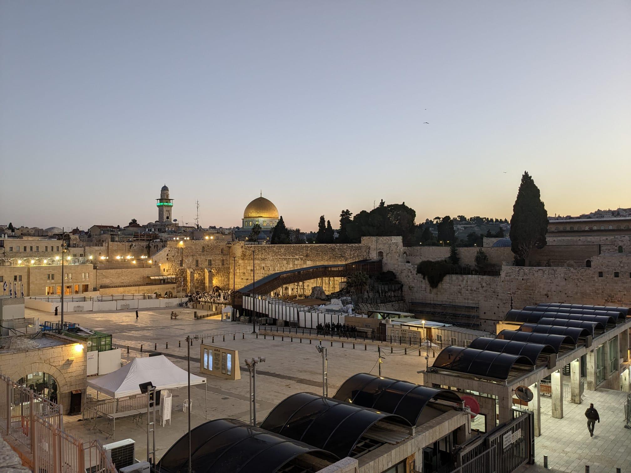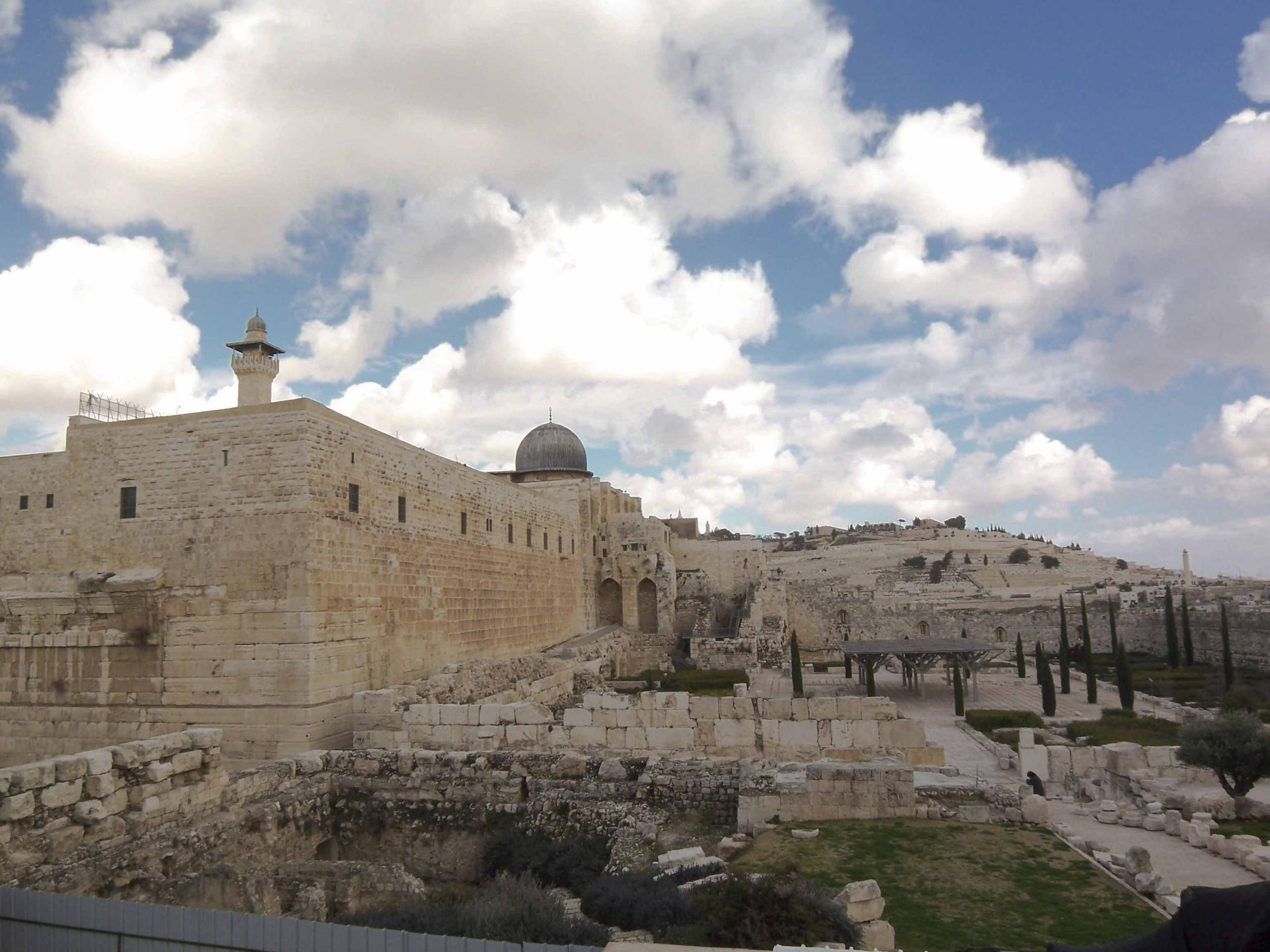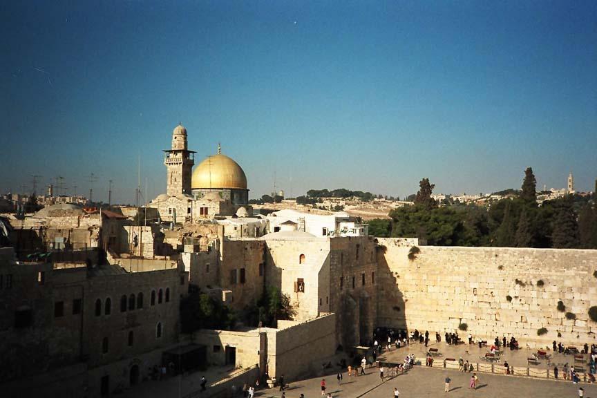 The Kotel or Western Wall is the holy centre of Jerusalem for the Jews and a short distance away, atop the temple mount (of which the Western Wall) was and is a retaining wall, is the Al-Aqsa, a holy place for Muslims.