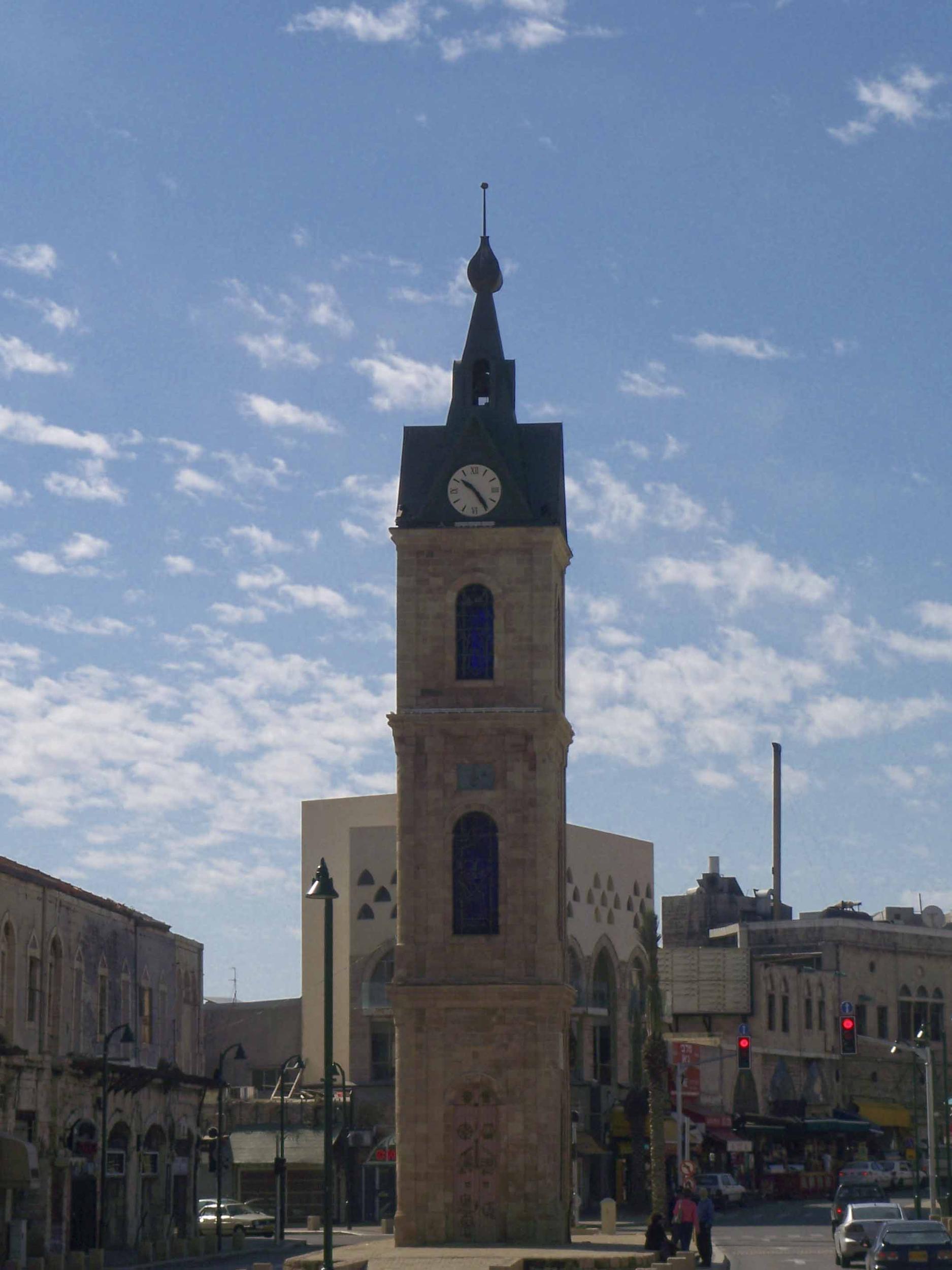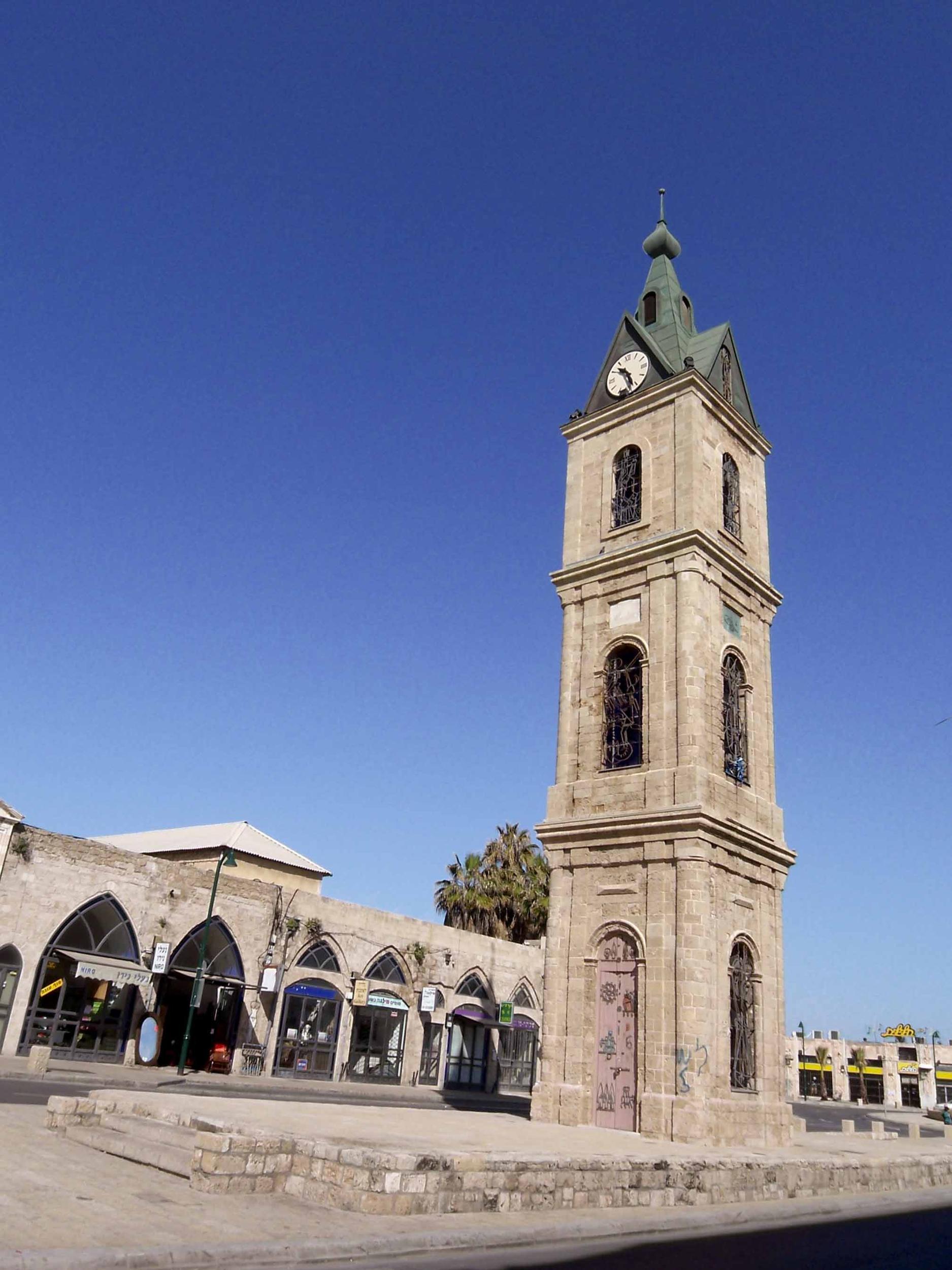 The ancient city of Jaffa is very near to Tel Aviv. It has some very attractive views, as well as a nice bohemian atmosphere. The clock tower is a centrepiece to the town.