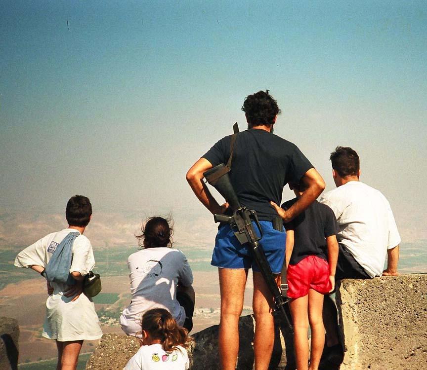 Security is unfortunately an overwhelming issue in Israel. The first picture shows an armoured car, from the Six Day War (1967) in the Golan heights, in the north of the country. Next is shown a border watchtower keeping an eye on the Syrian - Lebanese - Israeli border, right on the northern tip. The next two pictures show a watch post in the south keeping an eye on the Egyptian - Israeli border. The last picture shows a man who was accompanying our group as a guide and factotum, but as can be seen wore his gun at all times. Whenever there is a larger group of people moving around it is generally prudent to have armed people with. As most of the population has done national service they are all militarily trained and as such are equipped to escort groups, without having to rely on the police or another security force.