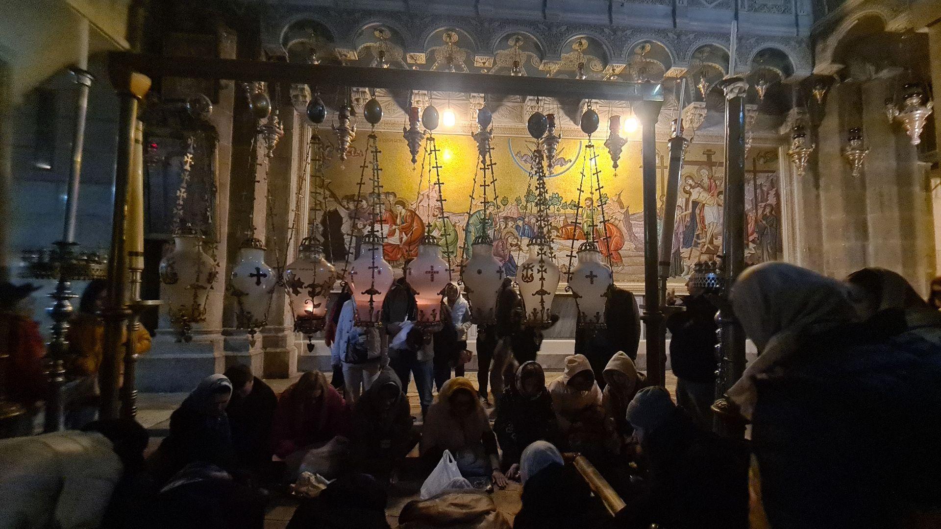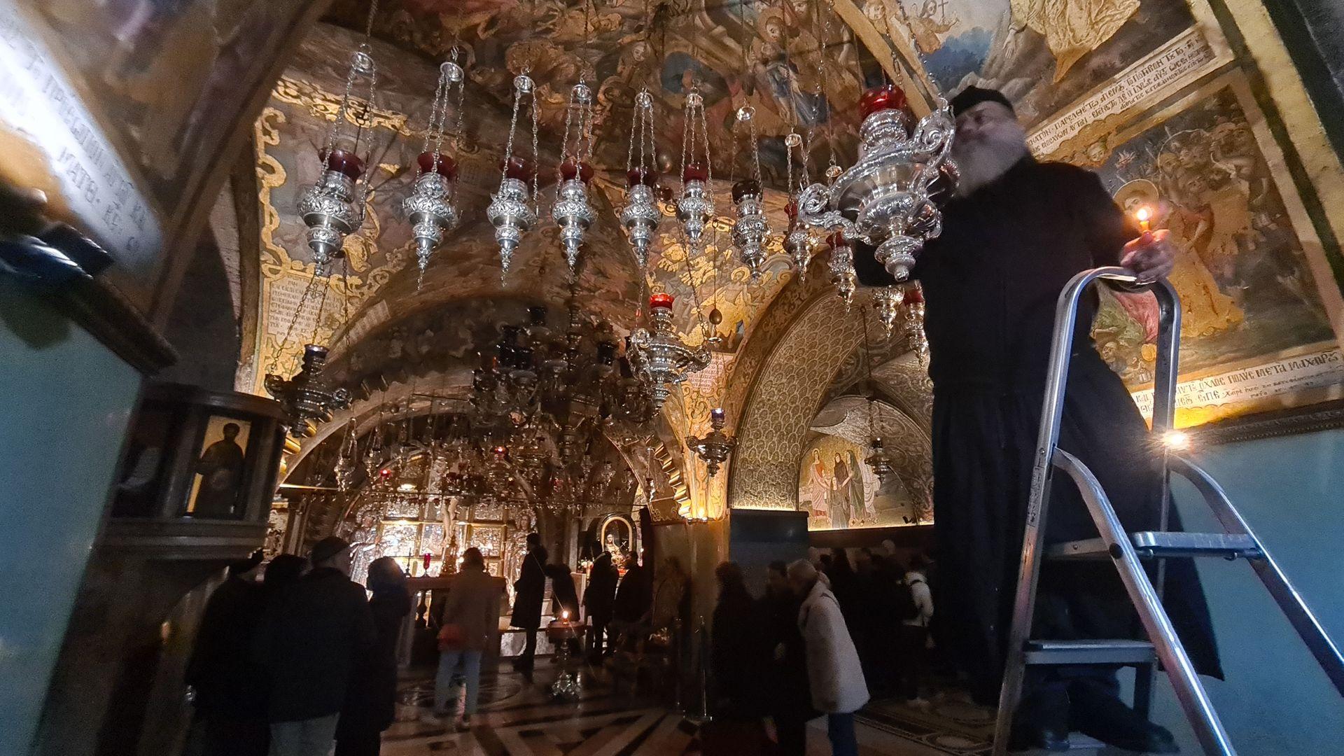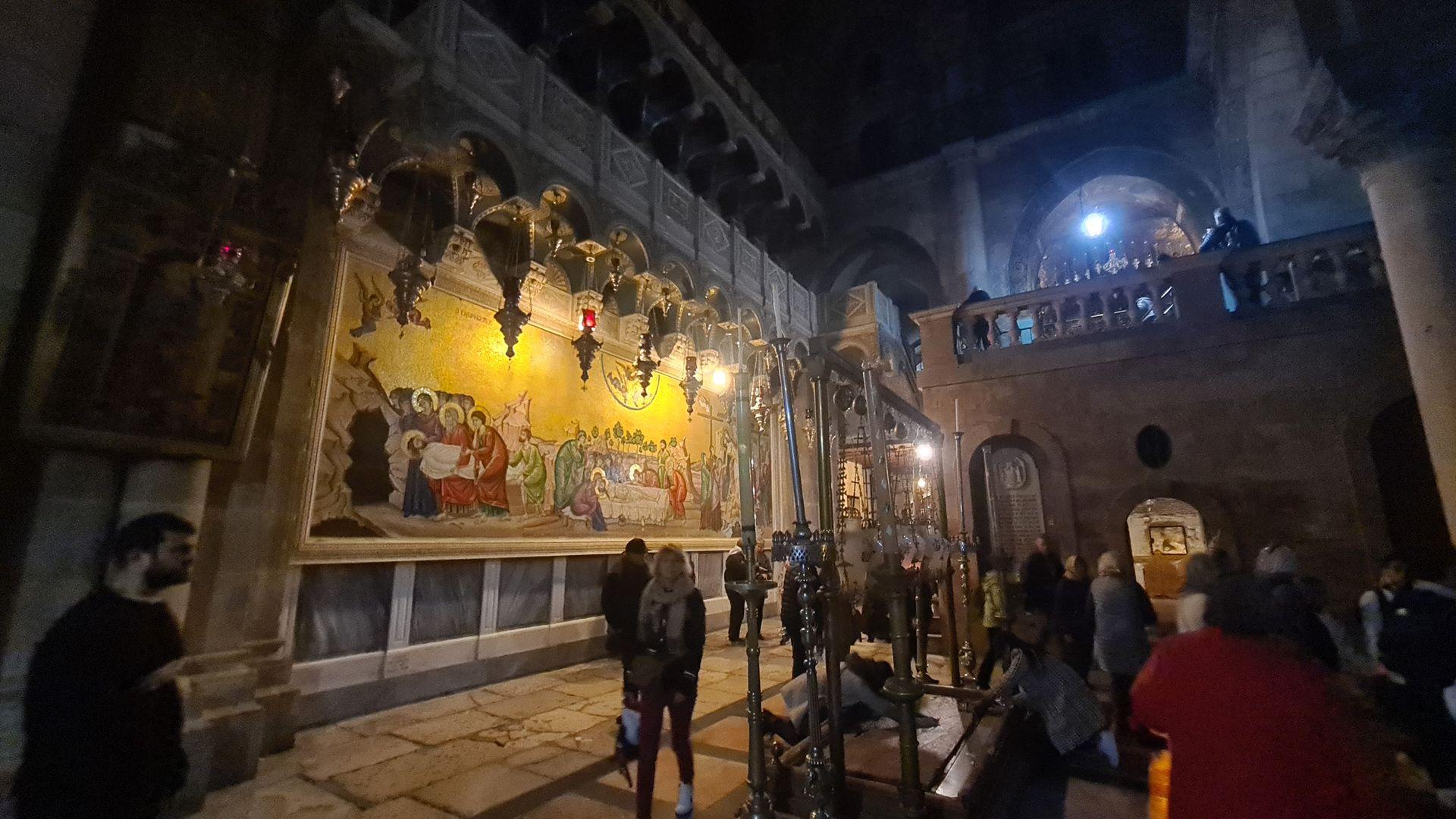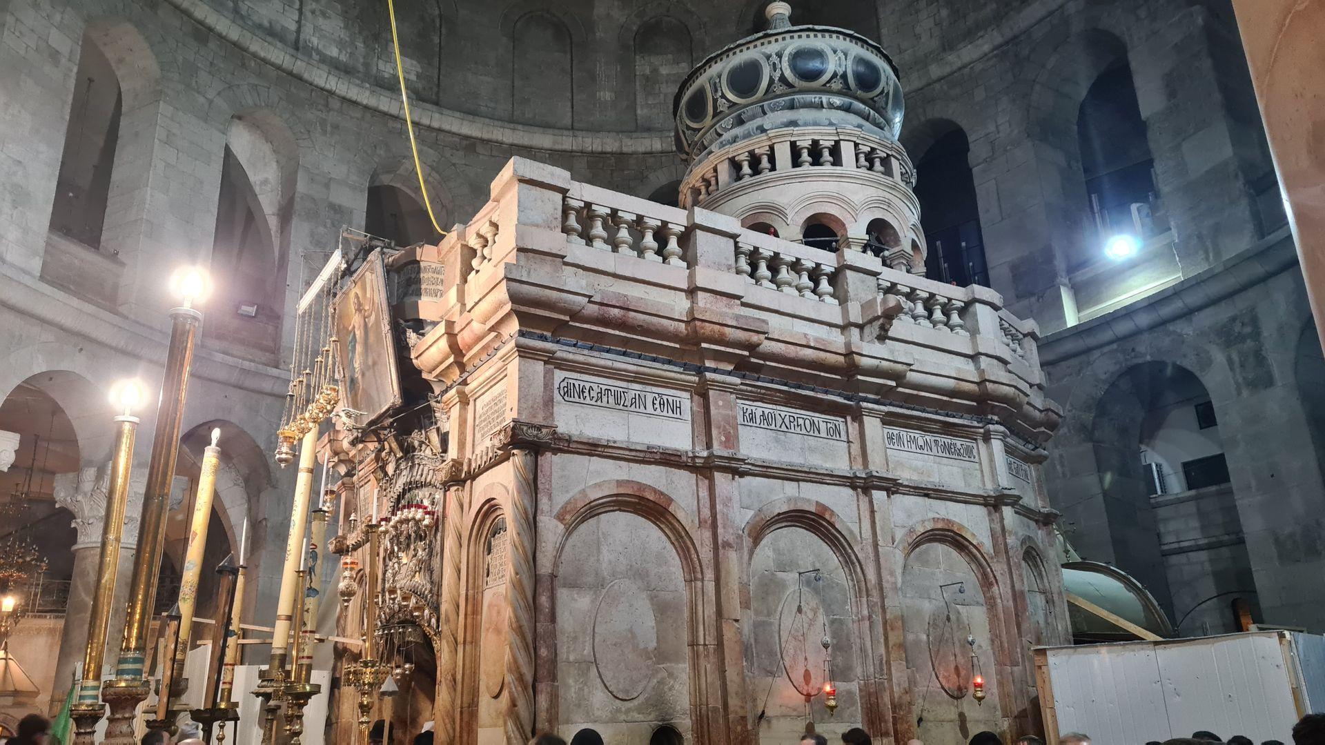 The church of the Holy Sepulchre is shared by various Christian denominations and is one of the holiest sites in Christendom. They unfortunately have occassional fights amongst the priests there. Thankfully, it seems peaceful on the outside.