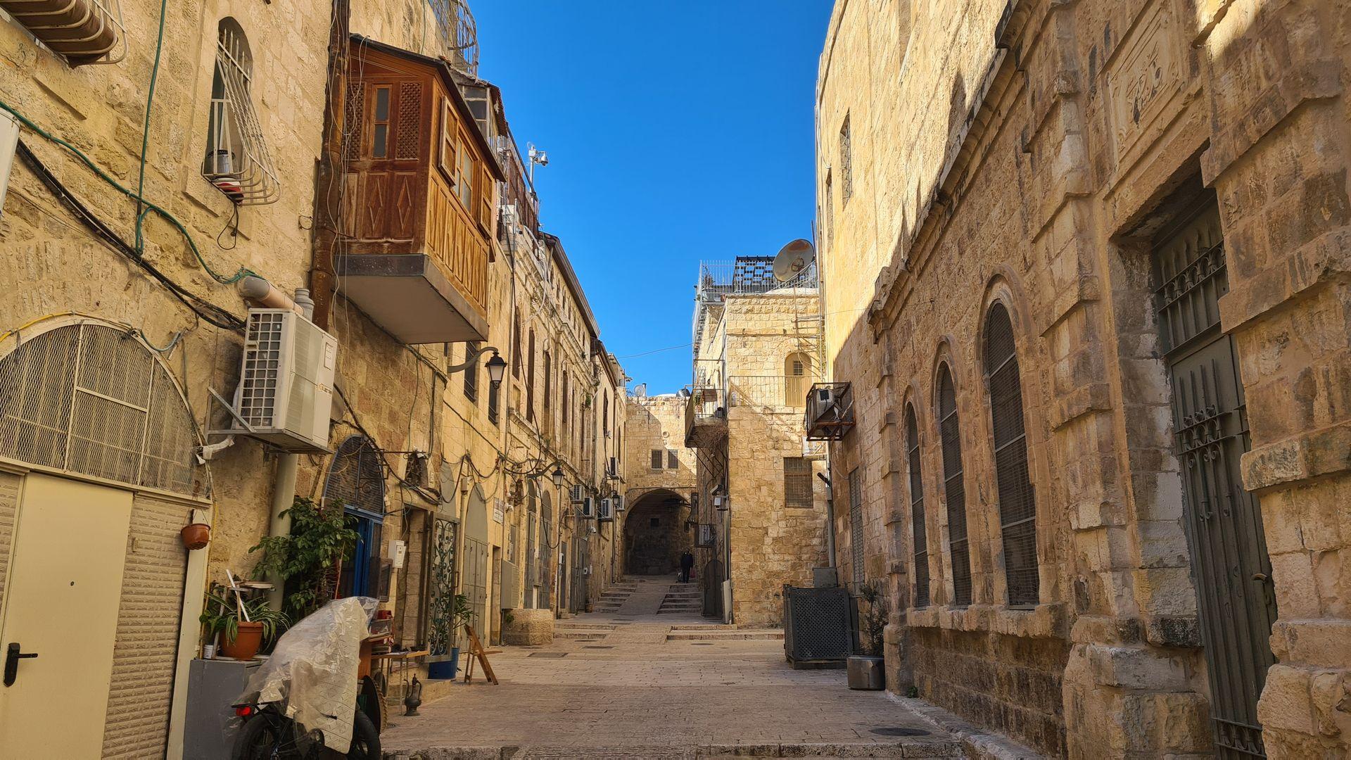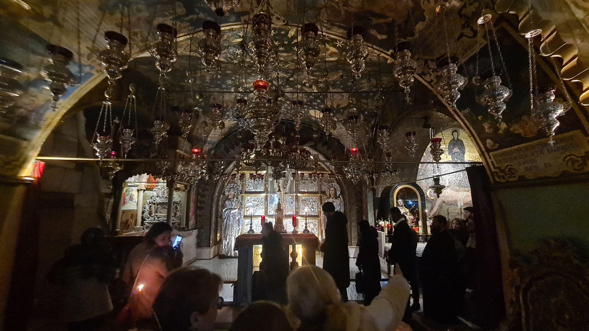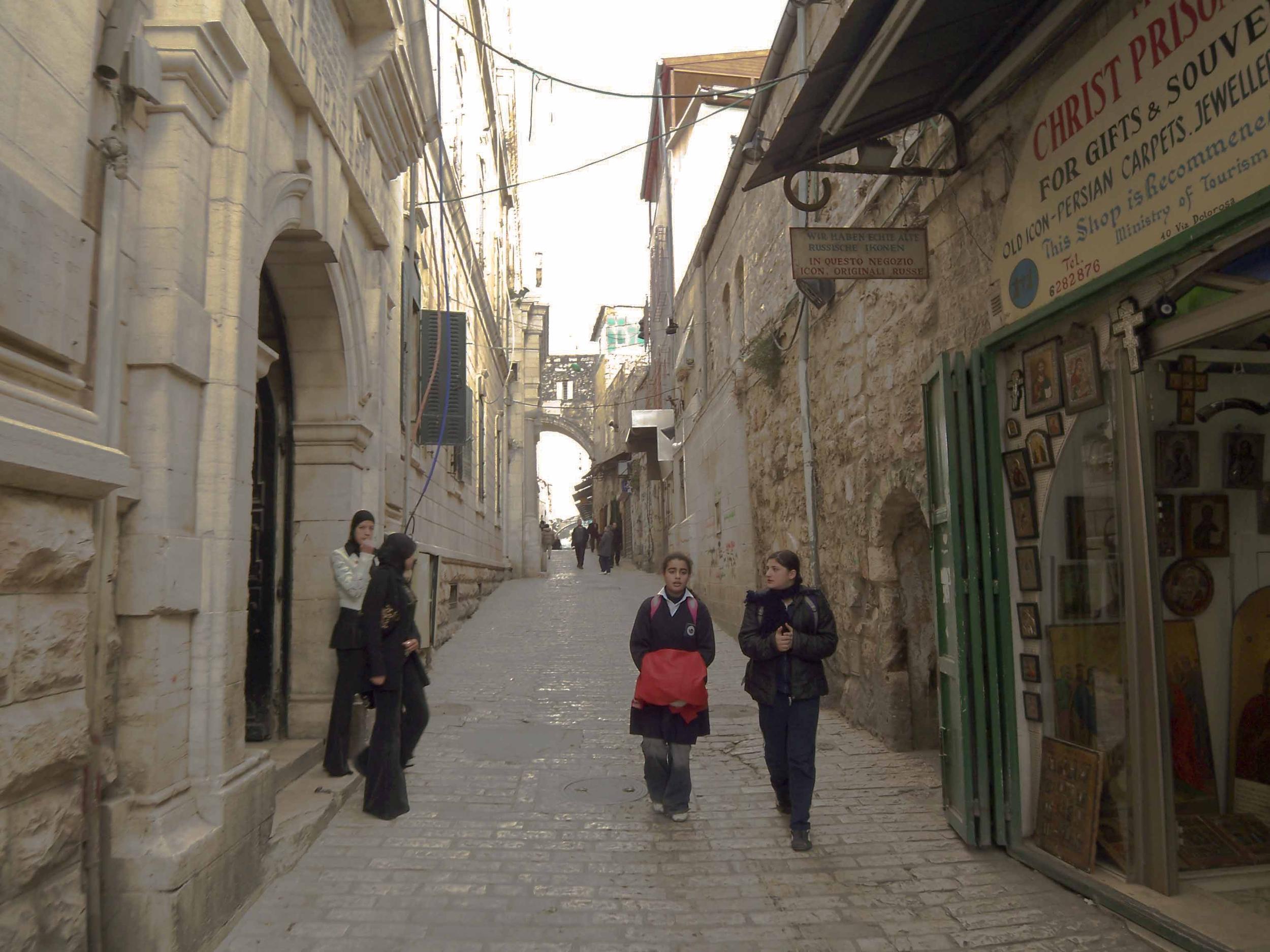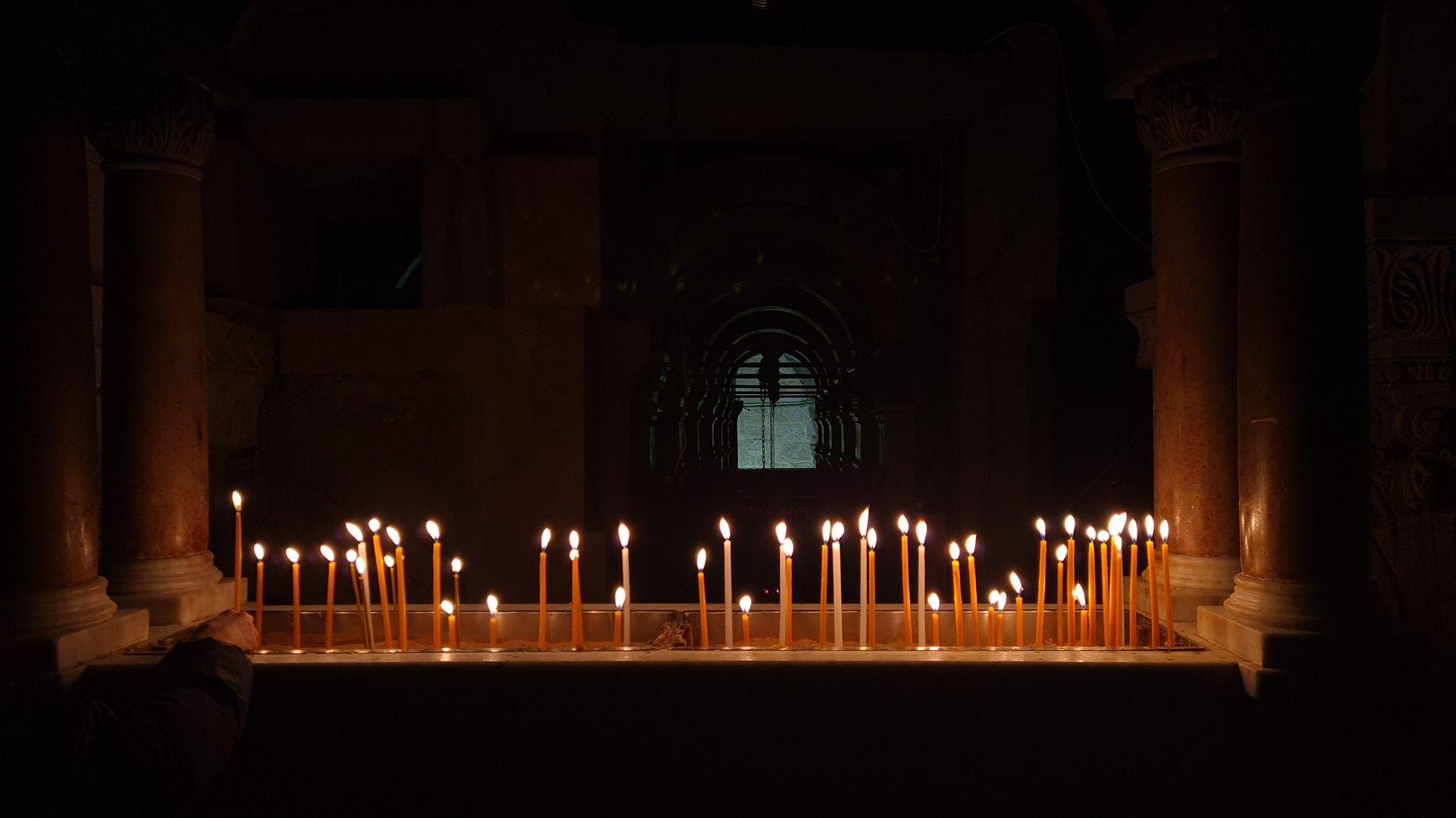 The church of the Holy Sepulchre is shared by various Christian denominations and is one of the holiest sites in Christendom. They unfortunately have occassional fights amongst the priests there. Thankfully, it seems peaceful on the outside.