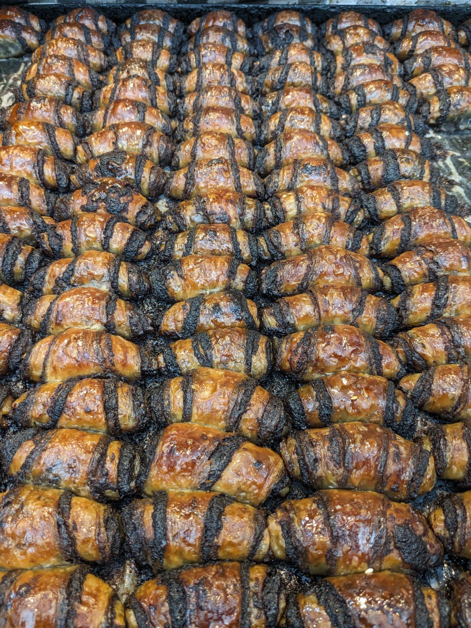 The food in Israel can be very good, this schnitzel in challah by Yehudah Machane was scumptious and the tray of rugelach was very tempting too.