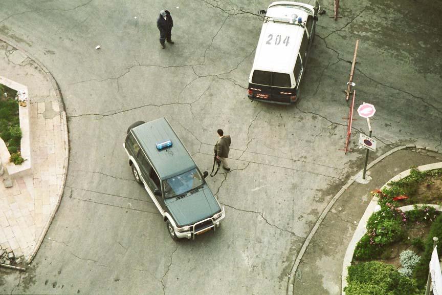 These next photos are from my hotel room window, when I was staying in Jerusalem when I was twenty, road blocks and snipers sprang up in moments and within a relatively short time disappeared again. I don't know exactly why they appeared on this occasion, but it is unfortunately an all too common occurrence in Israel.