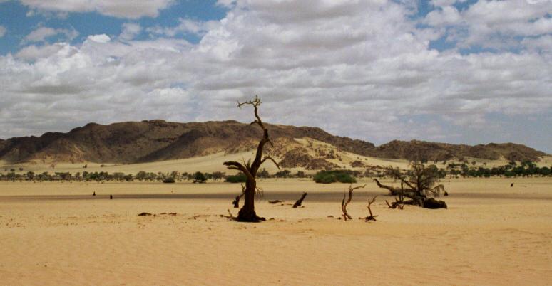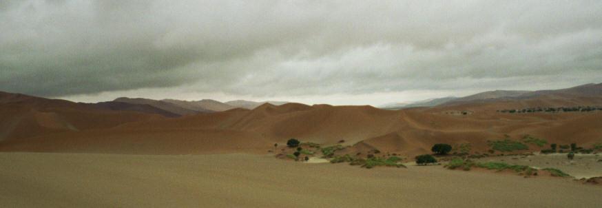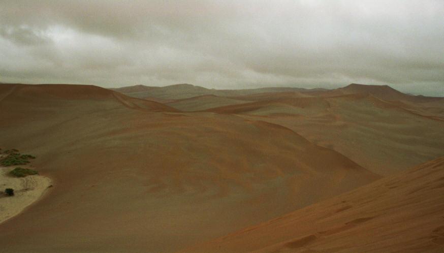 The Namib desert is one of the nicest I have seen, as it often has a an orange or red hue to its sand. As we were heading along a road through the desert there was a great view of the orange desert with yellow flowers at the side of the road, under the unmistakable African sky (photo 1). The dunes around Soussesvlei (photos 3 - 5) are some of the worlds largest.