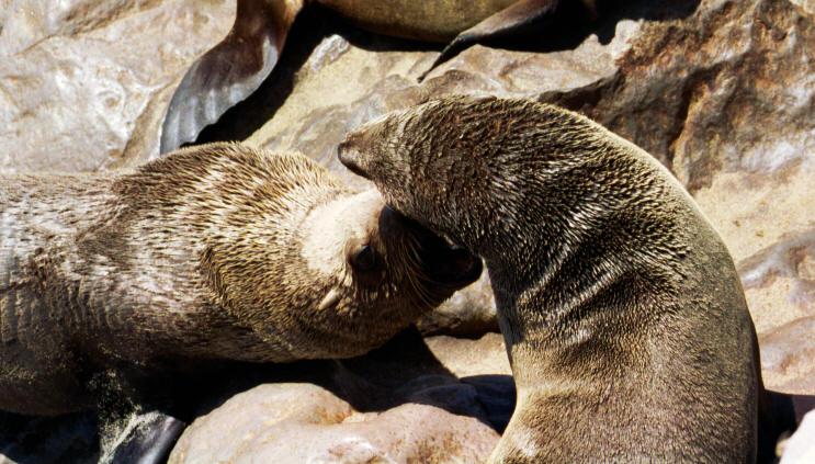 At Cape Cross Seal colony there were several hundred thousand seals along the shoreline (photo 1). As it was during pupping season there was a horrendous stench of rotting placentas as well as crushed newborn pups. The pups that were waddling about (photo 2) were really cute, with jet black fur and big black eyes. As many of the seals barked and grunted, some appeared to be kissing (photo 3).