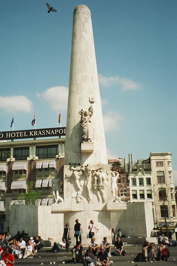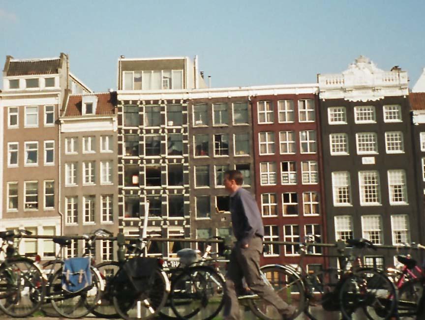 The Amster Dam itself is no longer actually a dam but a big phallic monument in the town centre (photo 1). The train station was one of the more impressive looking buildings I saw (photo 2). The typical buildings in Amsterdam (photo 3) are narrow things alongside a canal. The stereotypical picture of Amsterdam is of a canal with a nice old bridge across, so I thought I should take a photo of one of the few spots that actually looks like that (photos 4 & 5).