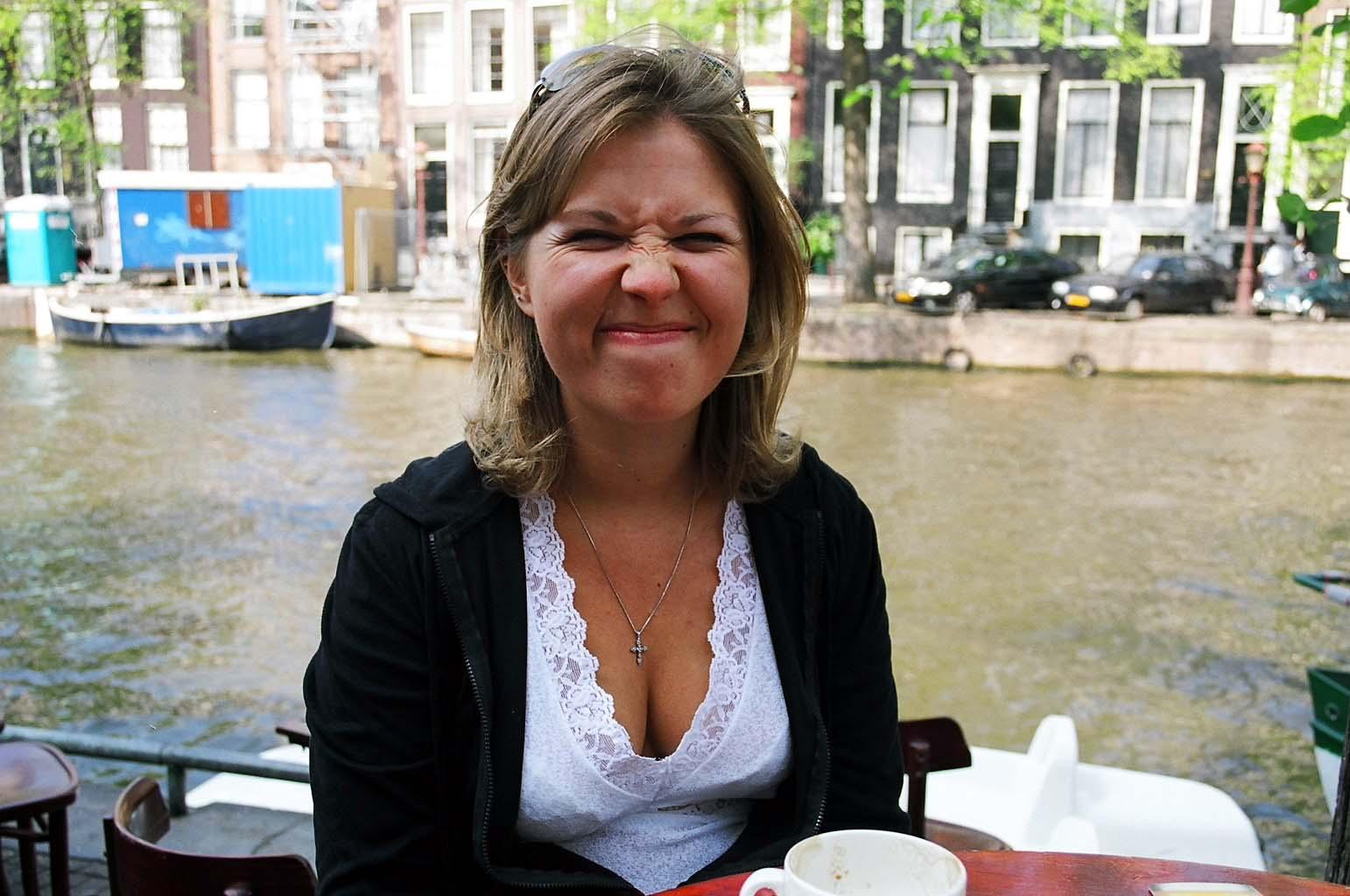 One time I went to Holland I was accompanied by my friend Hanna from Arizona (photo 1), when we actually did much more touristic stuff than I usually do there. She got a little bit excited when she met Hanser Brinker, the boy who stuck his finger in a dyke (photo 2) or perhaps she was going for a metaphorical reconstruction. My friend Micha (photo 3) acted as tour guide, being a local we thought some might think he would be good at this, however the reality is that he hadn't visited most of the places previously either. Obviously it would have been foolish to have gone to Amsterdam and not sample the local product (photo 4).