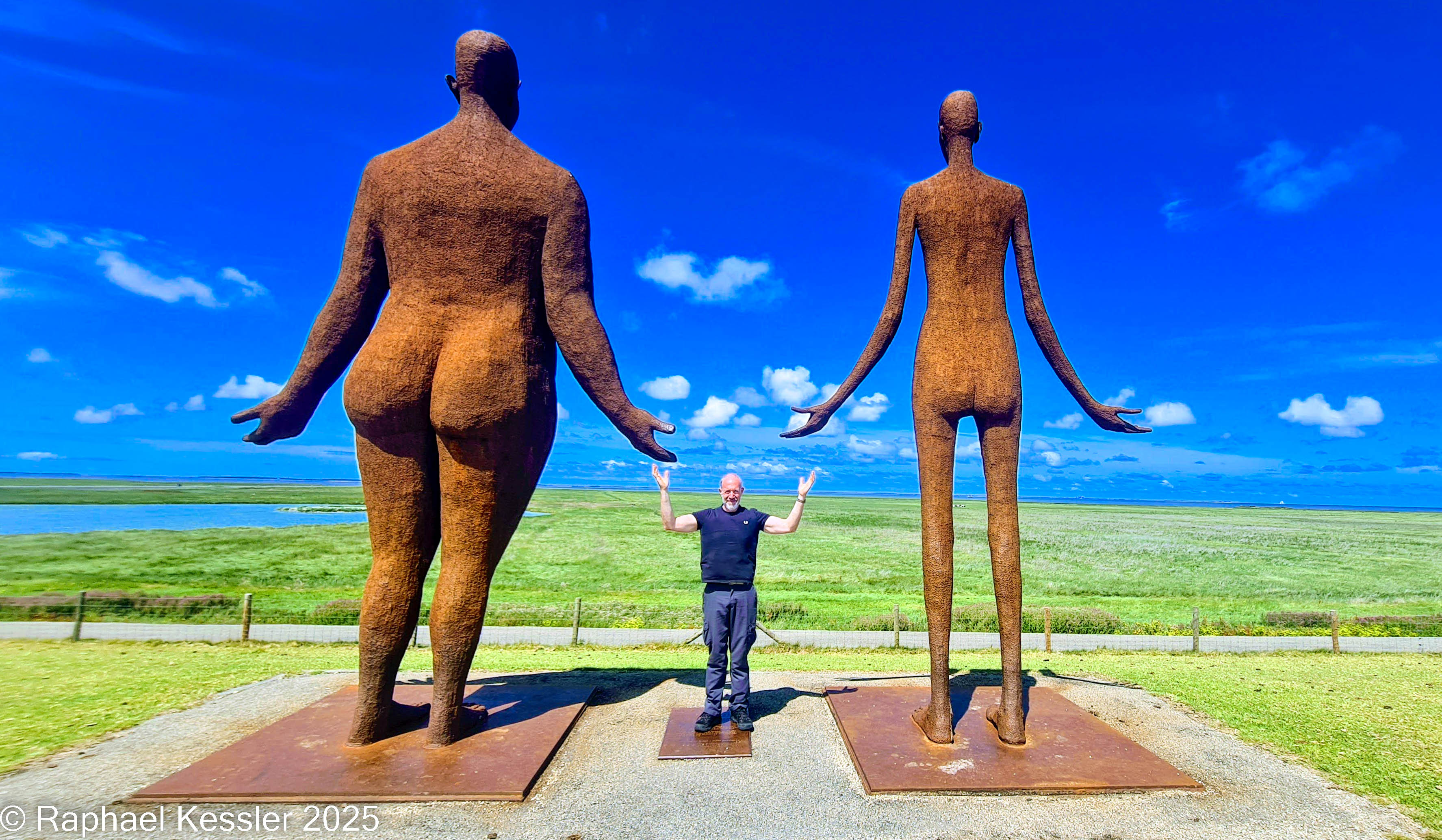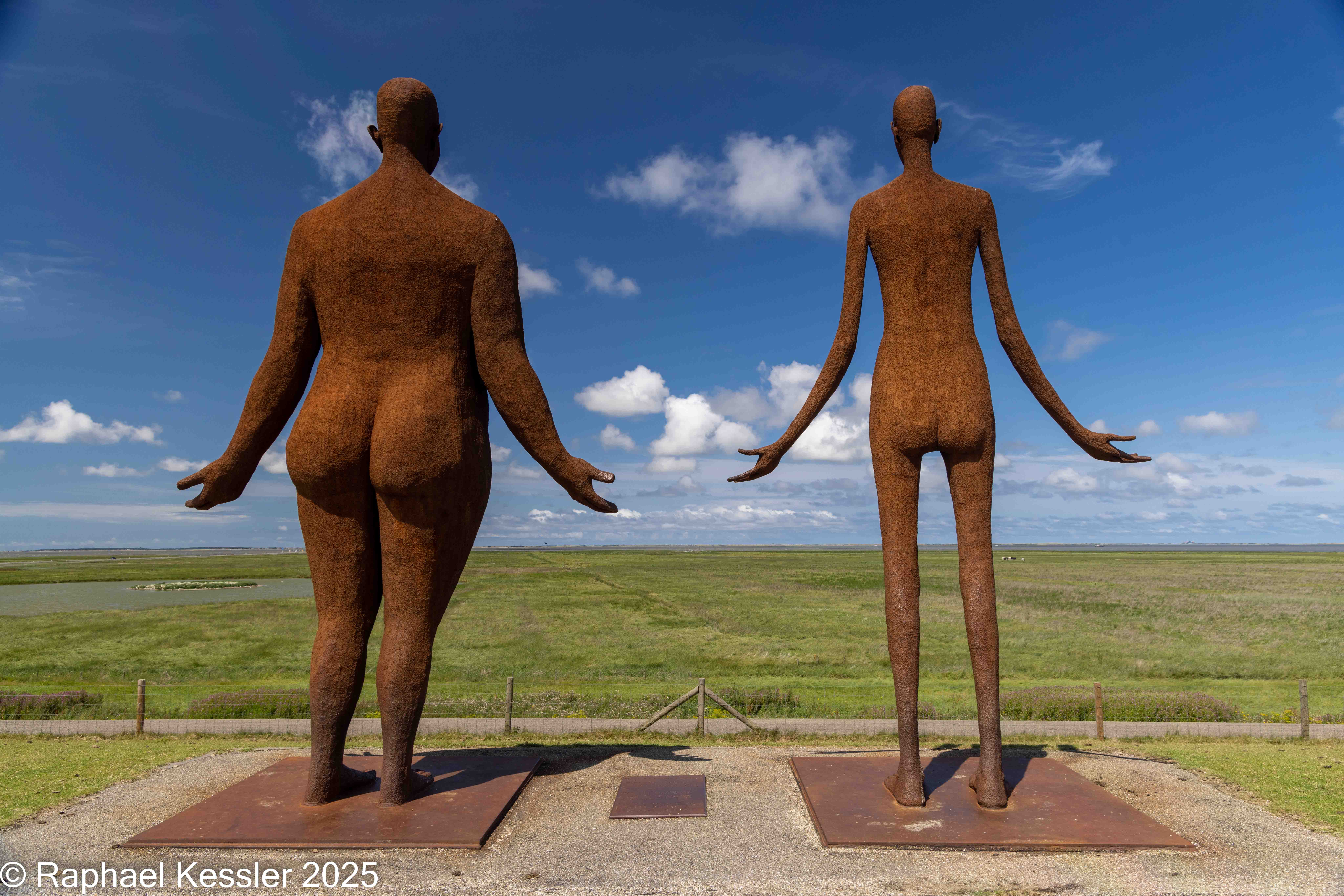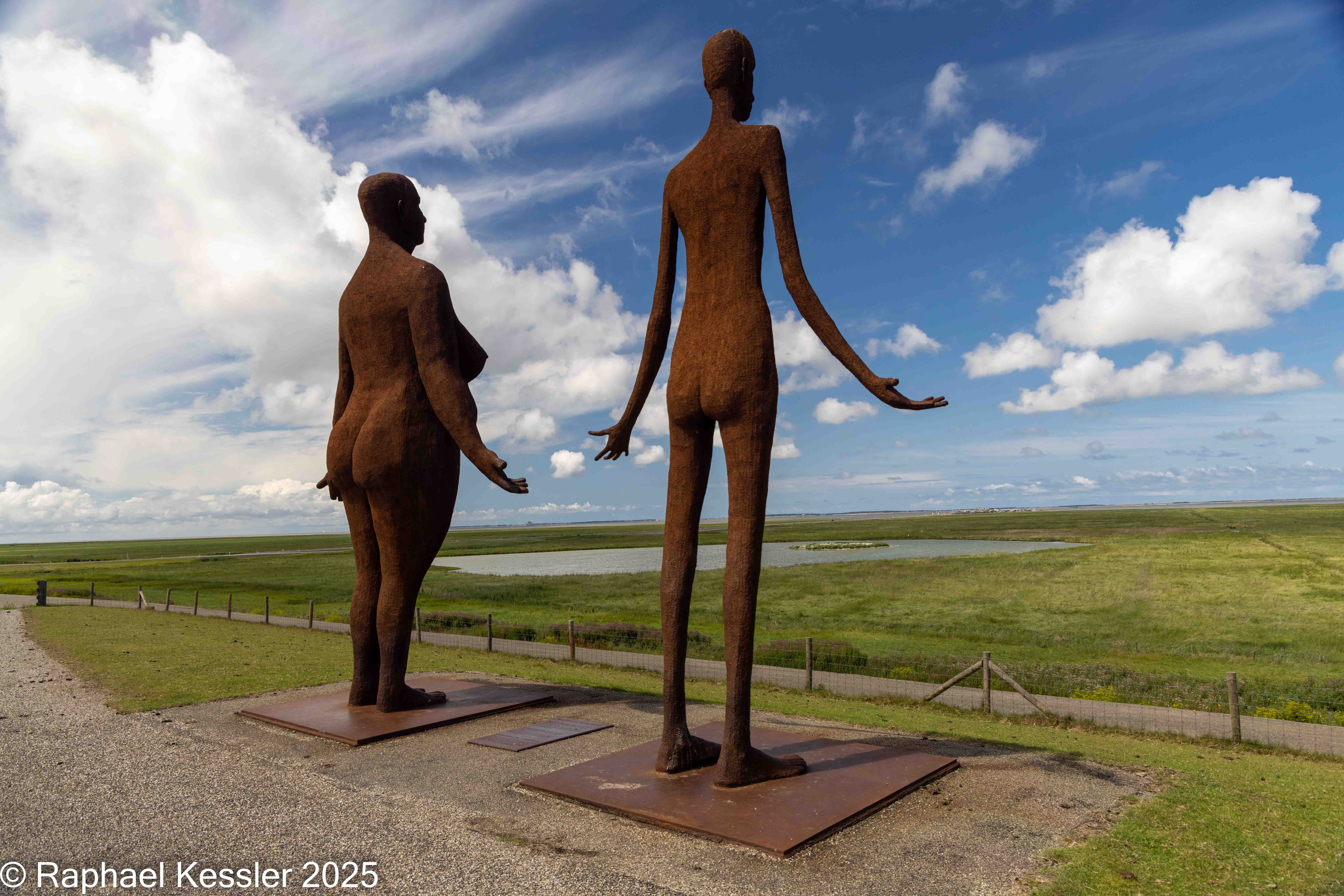 Wachten Op Hoog Water - (Waiting for high water) is a statue by Jan Ketelaar. The statue consists of two metal welded 5 meter high women. One big woman, the other one slender, looking out over the sea. You can position yourself in-between these women, and take their hand. The statue represents the search for balance and exchange.