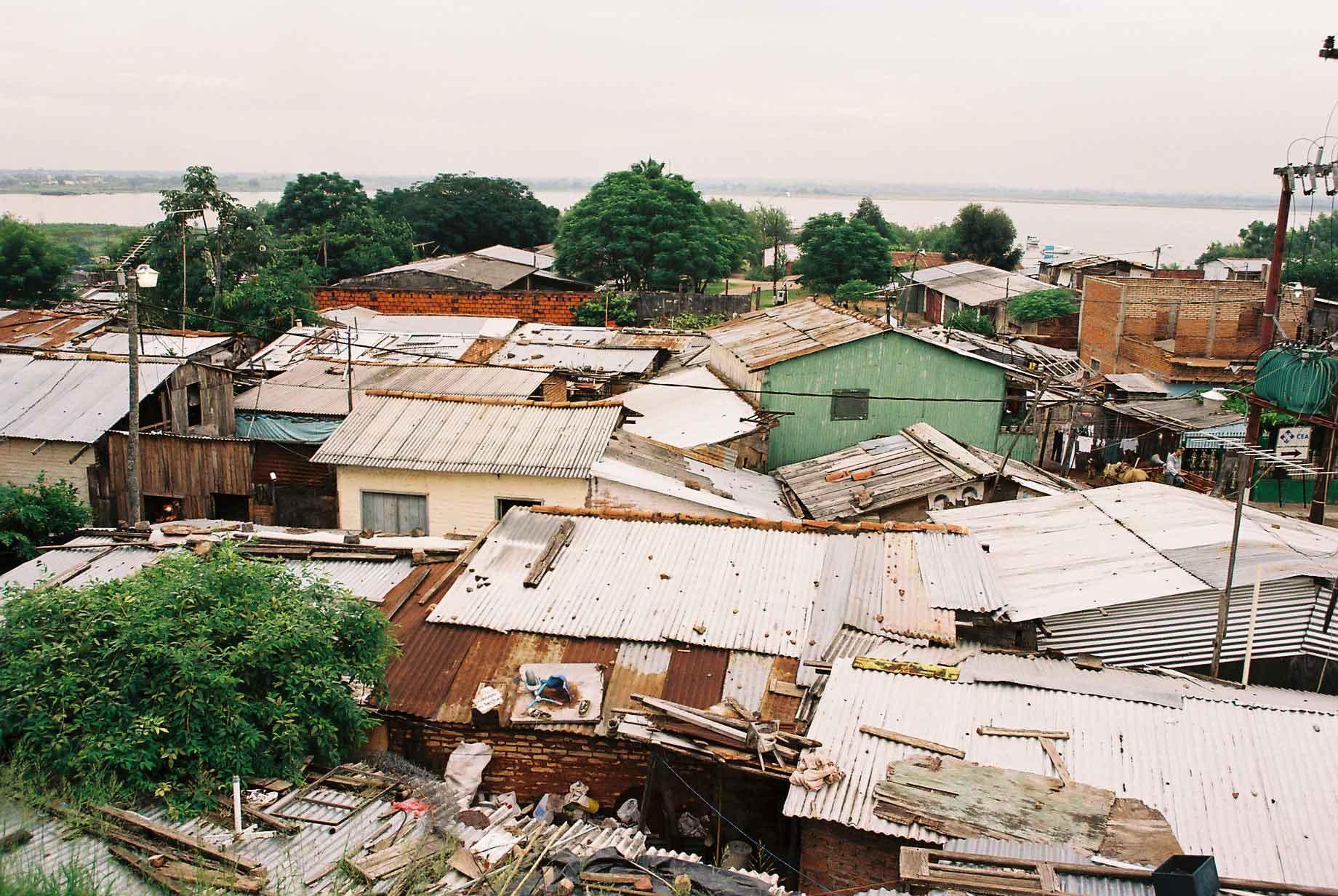 Asuncion, the capital of Paraguay is a pleasant enough place, there are a few nice buildings in the centre. Amongst these are the former Congress building that has been the scene of numerous abuses of human rights and slaughter of protesters (photo 1), which is why there are several plaques, statues and monuments in front of it. Just across the square from it, the new Congress building is very modern, all apart from one odd bit of wall that is built into the thing (photo 2). The odd thing is that just across a small patch of green (photo 3) is a shanty town (photo 4), literally a stone's throw from the seat of government. As far as shanty towns go, it could be worse, they have a barbecue pit going all day, several shops and a well used volleyball court (photo 5). On the downside, they have next to no sanitation, homes built from pathetically flimsy material and a disturbing level of violent crime.