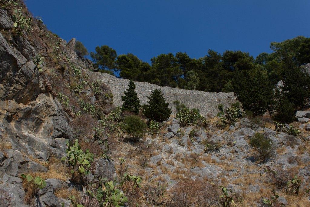 In Catania we rented a car and used this to continue our tour. First thing was we went in to the mountains nearby and came across Castello di Nelson. This was a monastery that was gifted to Admiral Lord Nelson by King Ferdinand in 1799, after Horatio had rescued the royal family from Naples where they were under French attack. Nelson was also made Duke of Bronte (the area), though it is thought that he never actually set foot in the place. His family still owned the so called castle and had the title up until the twentieth century. The renovations seem to be going on for quite a while, judging by the fact that the scaffold has plants growing up it.