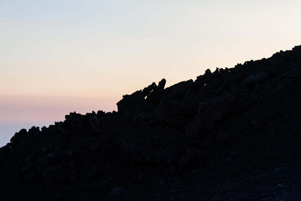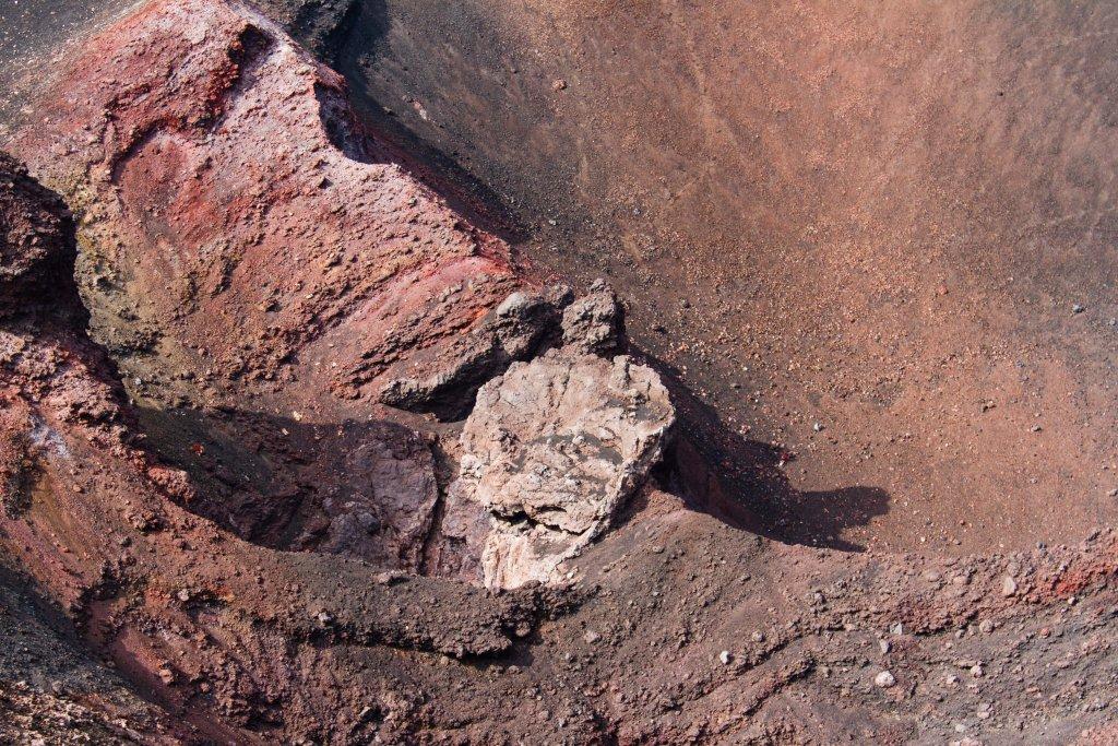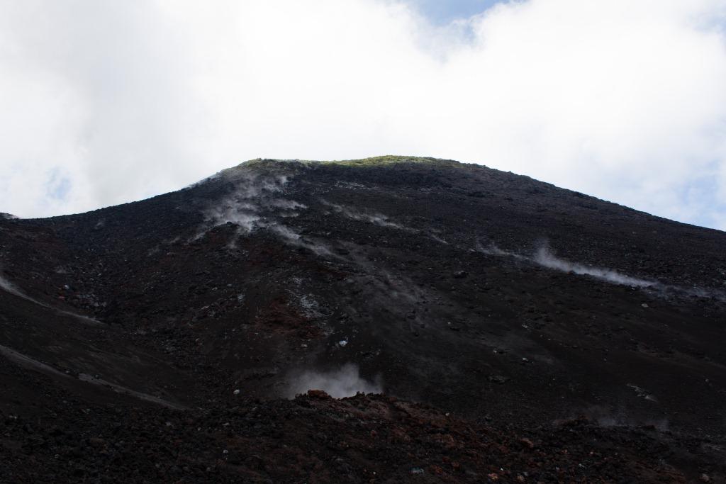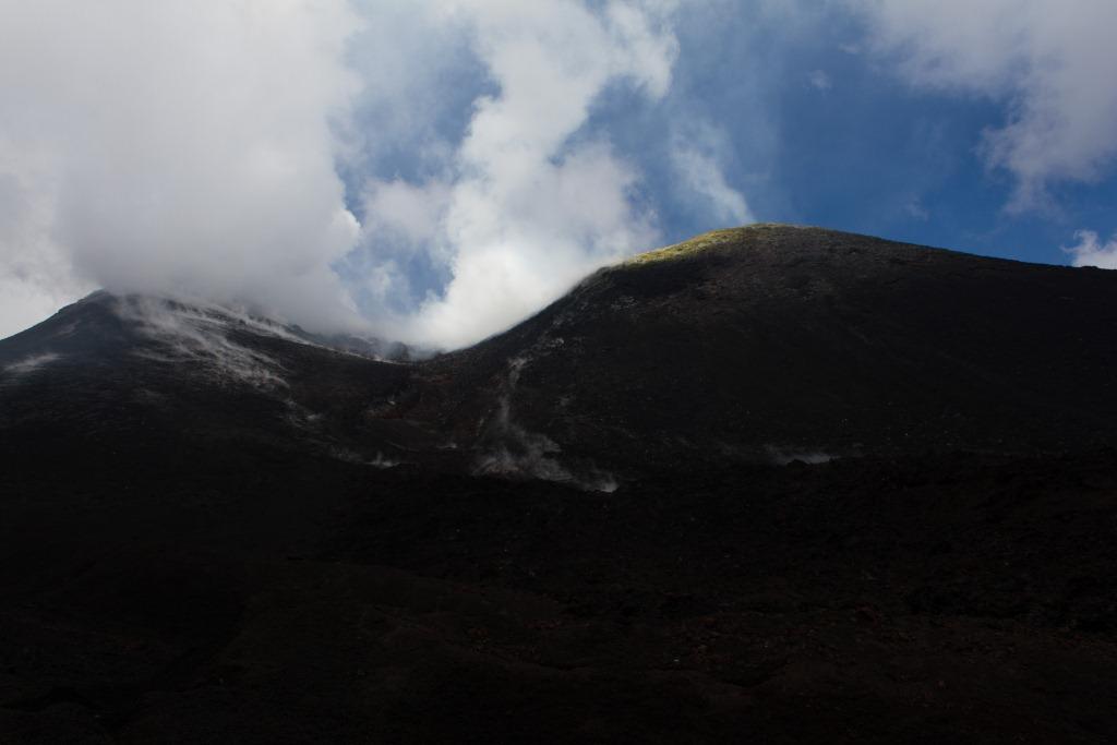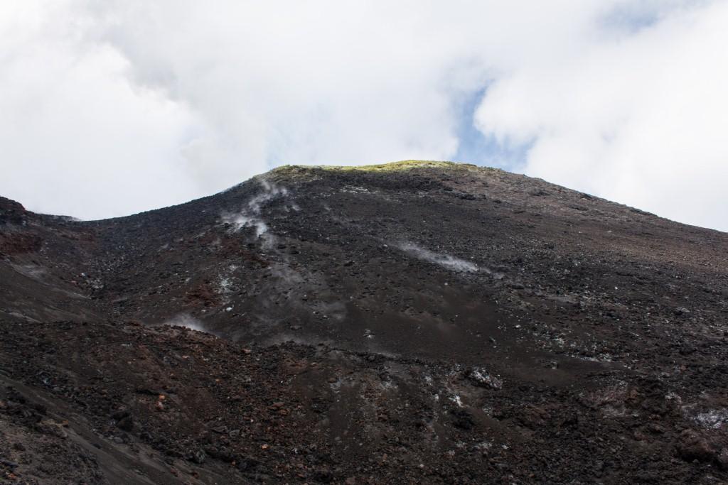 At the point where there is a safety cordon, with signs in various languages prohibiting upward travel without an official guide, I of course ignored that as I wanted to reach the main crater. I also believed getting the threatened fine would involve some Sicilian doing there job. My travel companion reluctantly accepted my reasoning (there were a couple of other rule breakers with us), so on we went. There were some boulders of snow and the footing was even looser. A couple of hundred metres from the main crater, others turned around. I continued, amongst steaming rocks, venting plumes. As I approached my destination, a guided group some way back were shouting at me to return. I ignored them and pretended not to understand what NOOOO!!! meant. I got to about ten metres below the main crater where the loose tiny bits of rock and ash, at a near vertical angle meant it felt (and probably looked) like a cat trying to climb a window. I reluctantly accepted defeat and descended a bit.