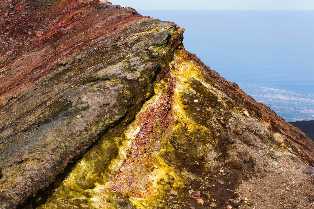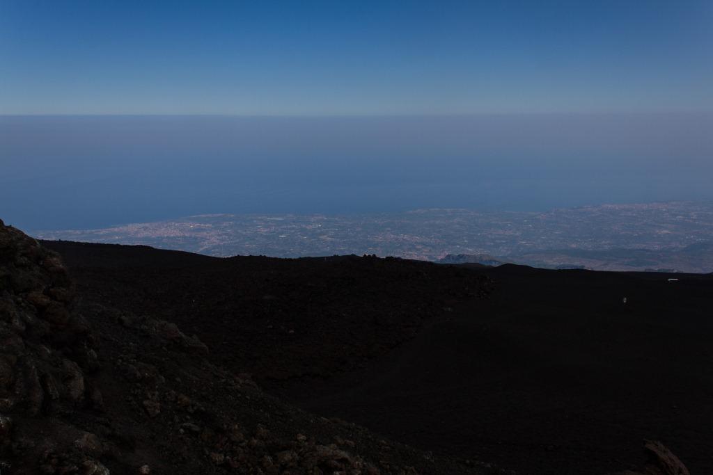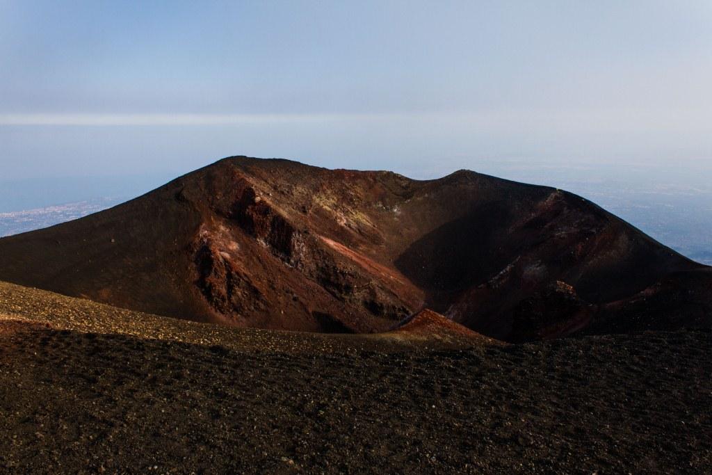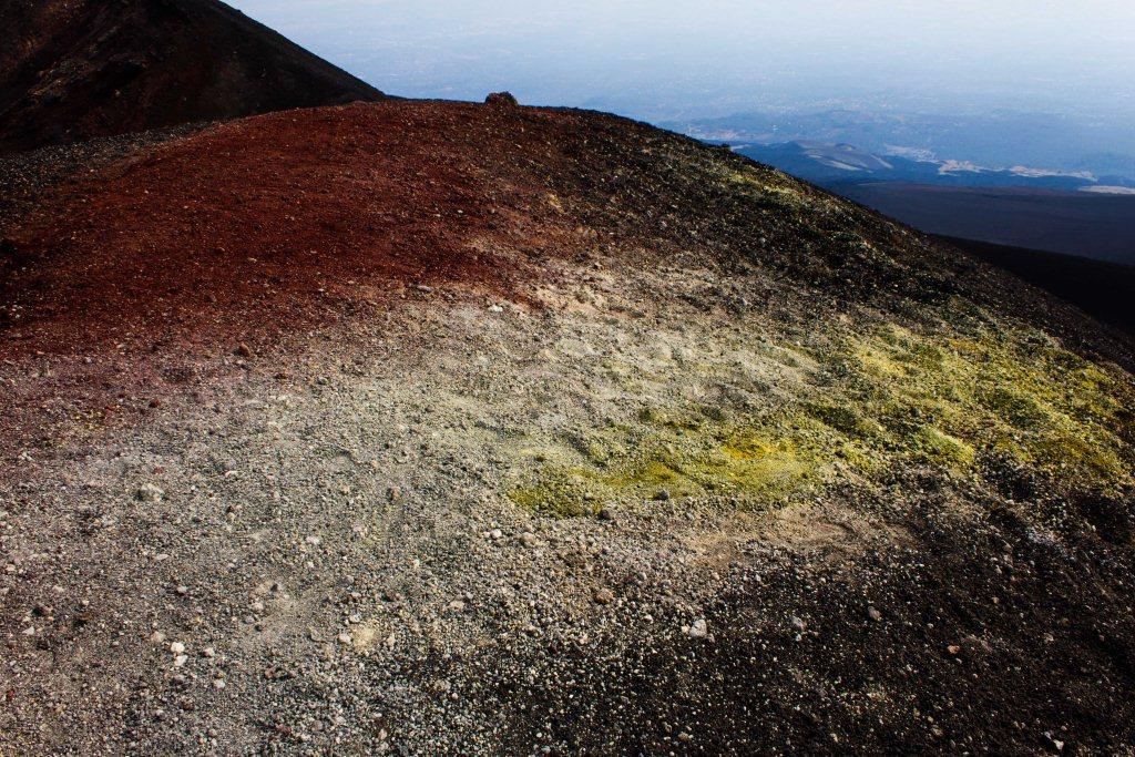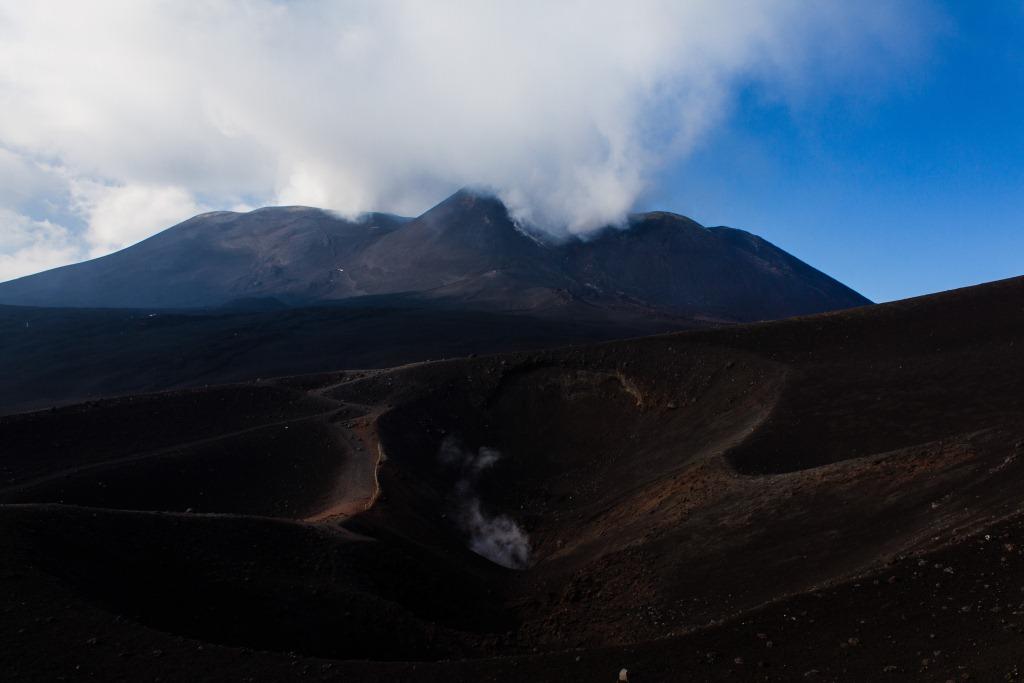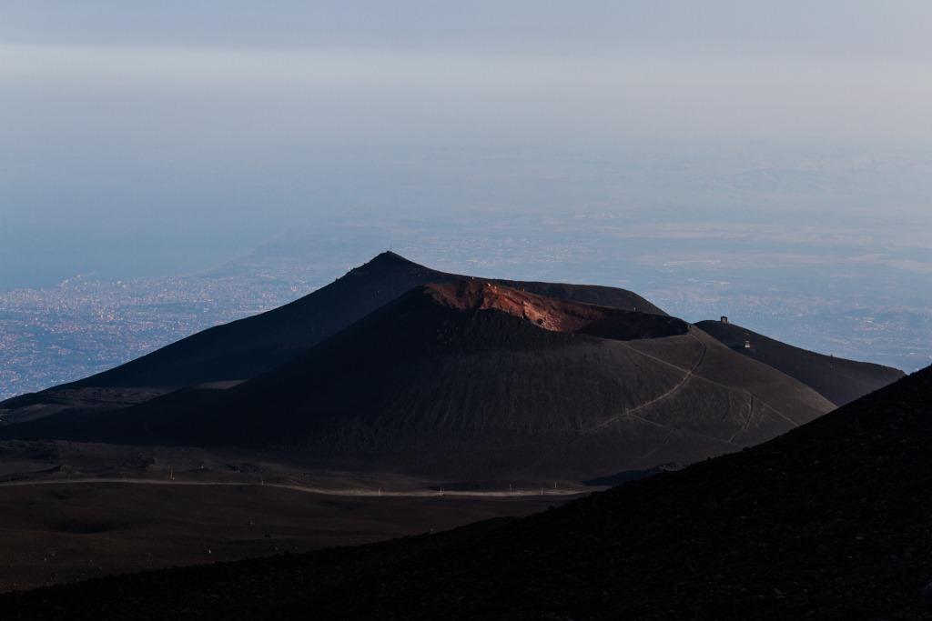 We got the cable car up the main uphill part and then walked the rest (the 4x4 bus was â¬35). It is quite hard going walking up a mountain of soft, loose rock, though allows for pauses and detours that the bus would not have. The views up to the main crater and to some of the other vents were nice en route, as were they downwards across the bay of Catania. Some people coming down the loose rock and ash would leave a plume behind them.