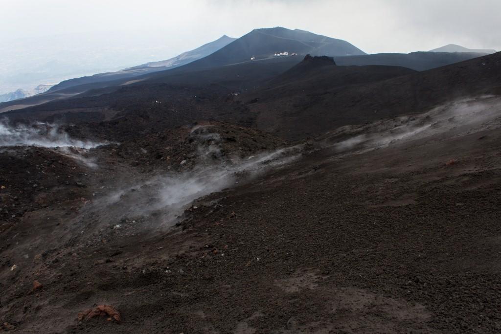 The following day we went to Mount Etna. It was a generally a clear day, though there is typically cloud around the steaming crater. On the way up the mountain there is evidence of its effect on the local environment and agriculture.