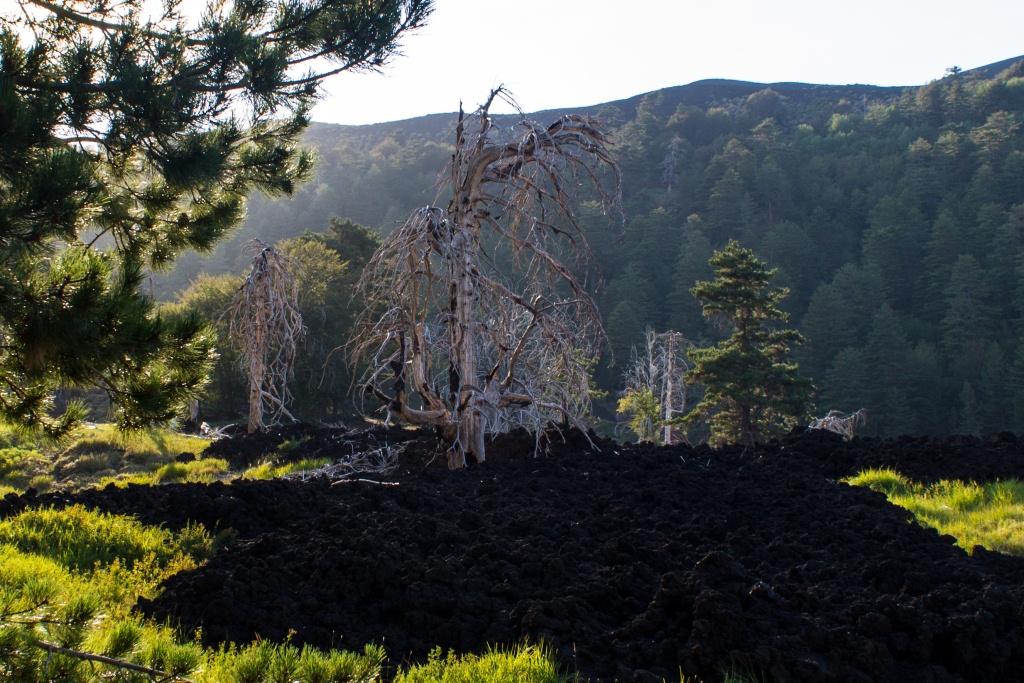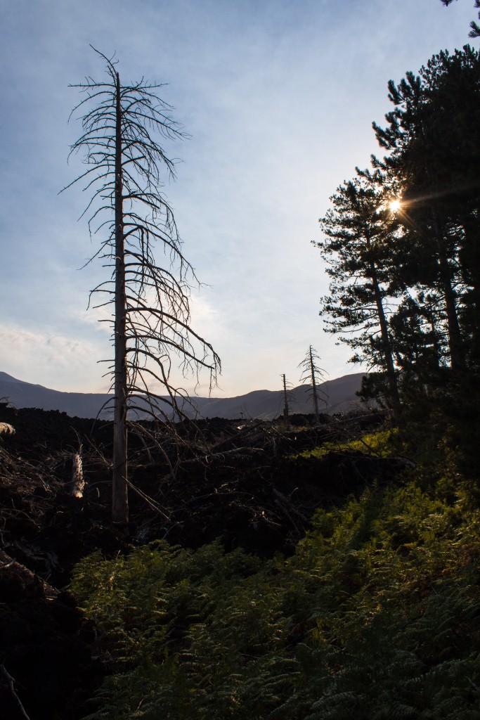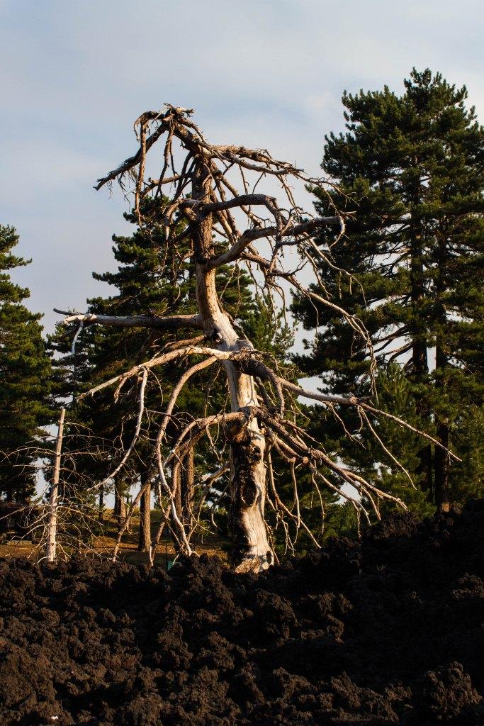 Towards the end of the trip, we returned to the north side of Etna, where the alpine forest climbs up the mountain, though swathes are destroyed and burned through. This gives a skeletal look to some of the dead trees which have been bleached by the sun. Some are burned straight through their trunks, whilst others are still erect, looking ghostly (reminded us a bit of the Ents in Lord or the Rings).