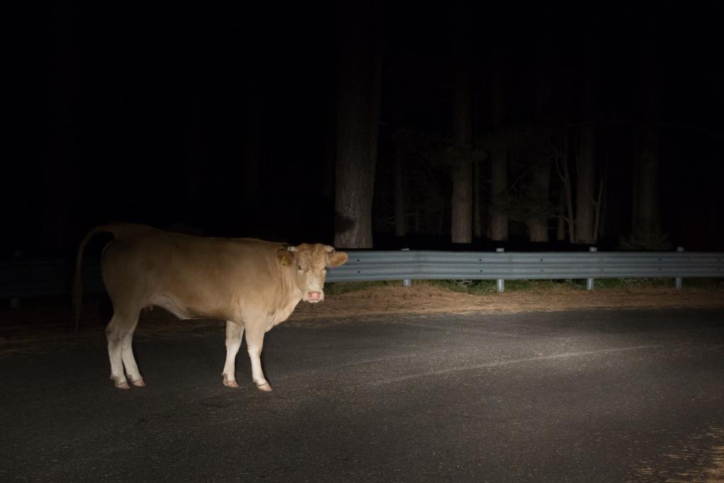 I liked these photos in the dark. Then as we descended, a cow decided to give us a staring match and idly walked from side to side of the road, with an apparent disregard and disdain for us and our car.