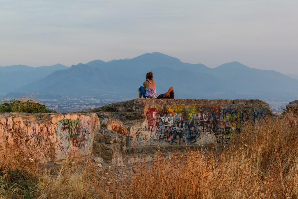 By this point, in the late afternoon, I was almost on my own atop the volcano, taking photos in the changing light. Then bizarrely, a cyclist appeared in full cycling paraphernalia, alternately cycling and walking around. He came over (turned out he's a Neopolitan) and we chatted for a bit, in my faltering Italian. Now I had missed the last cable car down, so I began the long walk downhill.