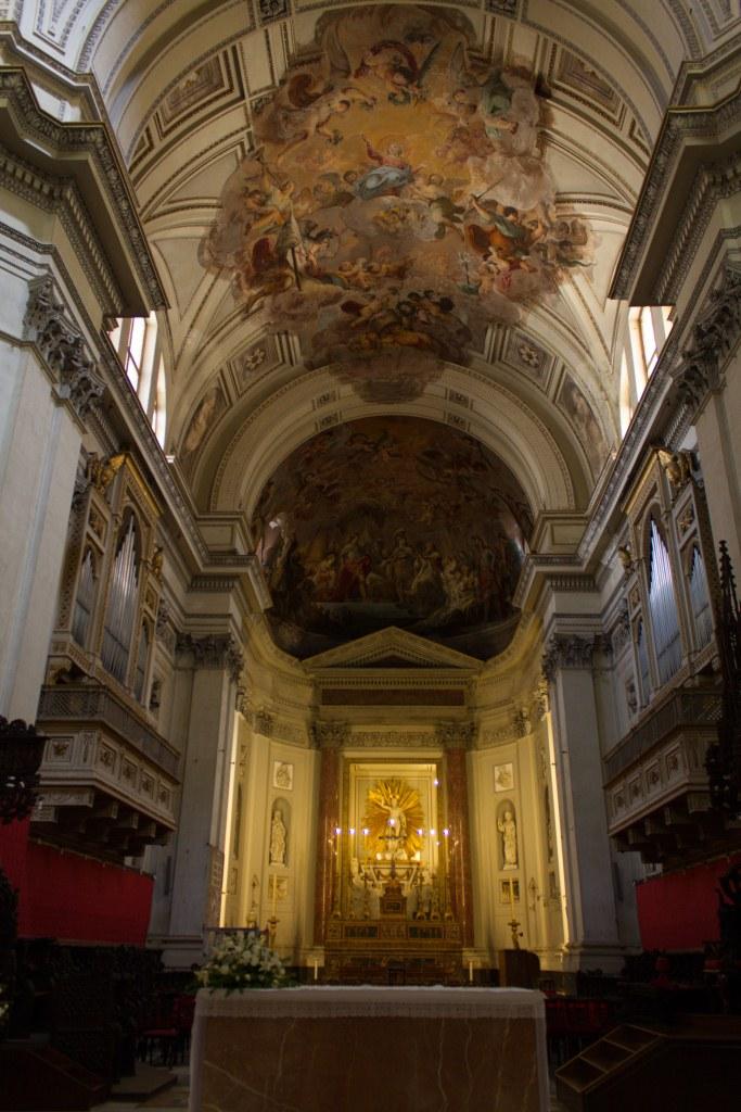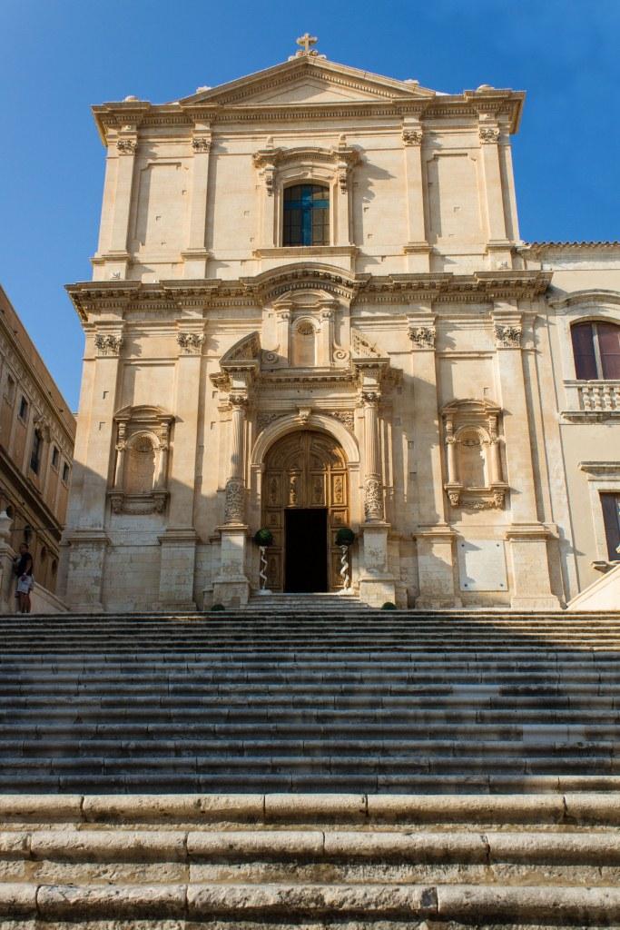 Siracusa has an imposing modern cathedral dominating the skyline. It is unfortunately less impressive on the inside though it does bizarrely have a collection of prostheses. There were some nice flowers growing around town too. There are some catacombs I did not visit, though I did take a picture of the church at their entrance.