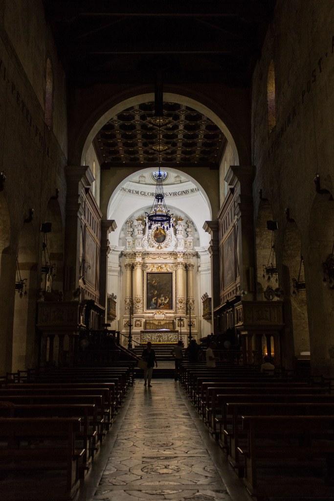 Trapani had a nice atmosphere and the main pedestrian street seems to be its prettiest, as well as the busiest at night. I noticed that in one of the churches, there was some hebrew writing behind the altar which seemed unusual. Even more peculiar was the hand gesture being made by the beardy chap above the door to another church. Seems more appropriate to a road rage incident than a place of worship.