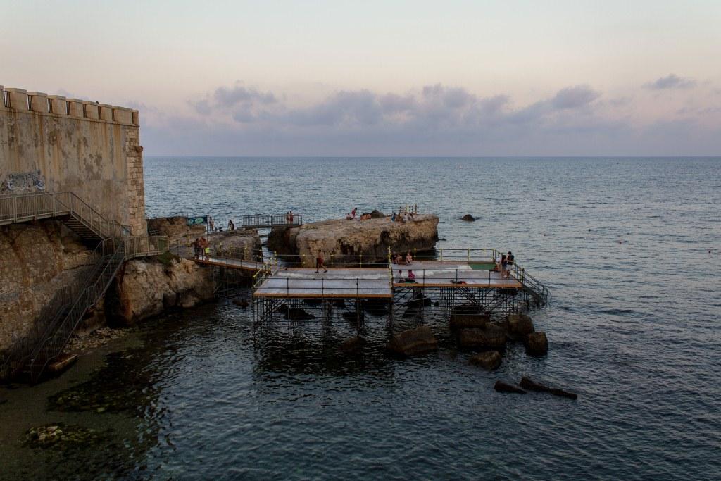 There is a platform down to some rocks, where we went for a night time swim. It seemed like a good idea until we got smacked against some sharp rocks whilst exiting. It made it more interesting and neither of us got particularly damaged. So that was that.