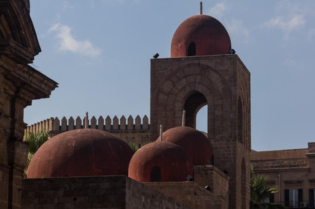 The red cupolas on this church appear Moorish with good reason. They are. It was a mosque that was then rededicated as a church and still retains that appearance.