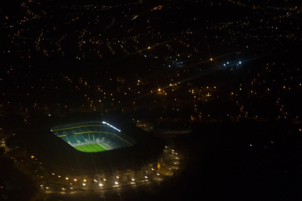 On the plane home, took a couple of night shots, they were actually of London. I'll move them some time. I have no idea which stadium this is. Tell me if you do.