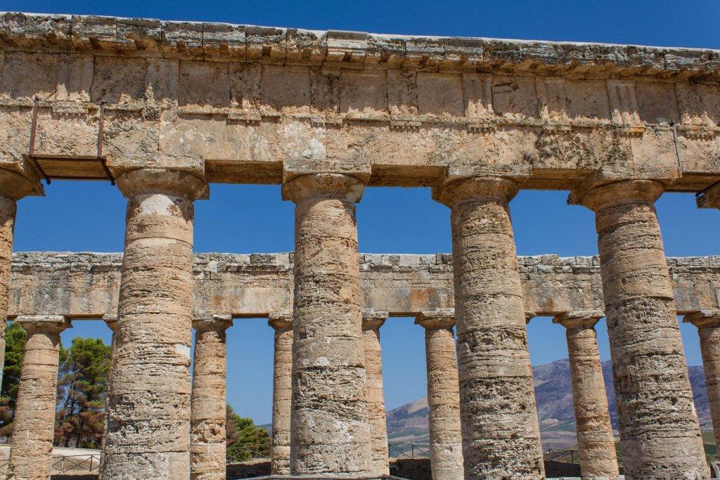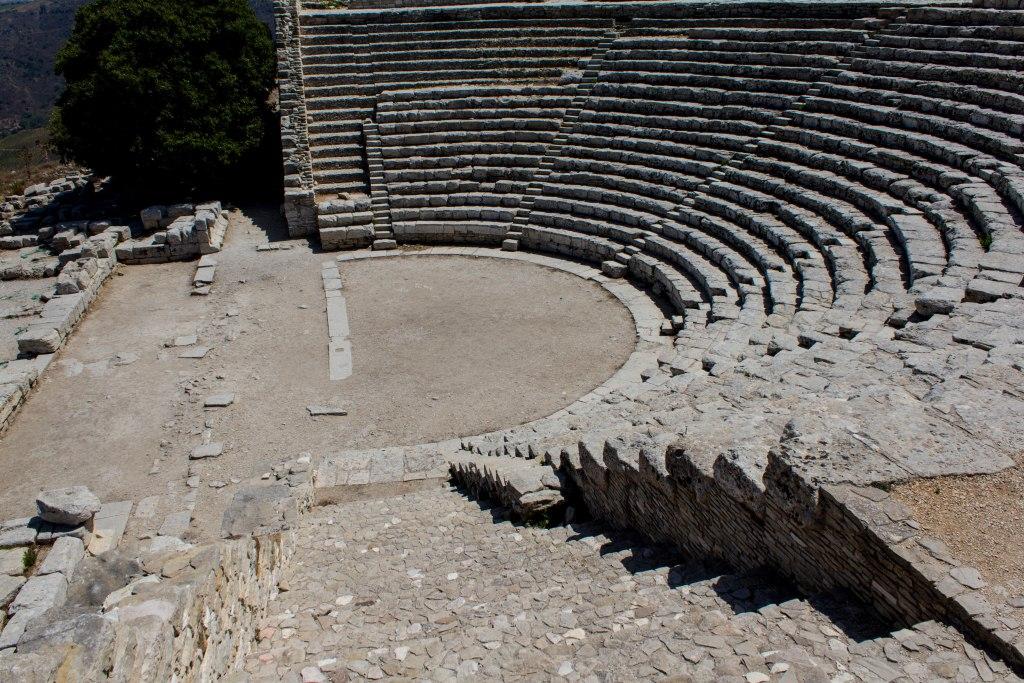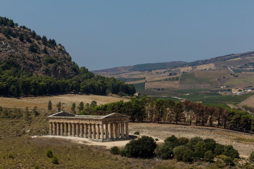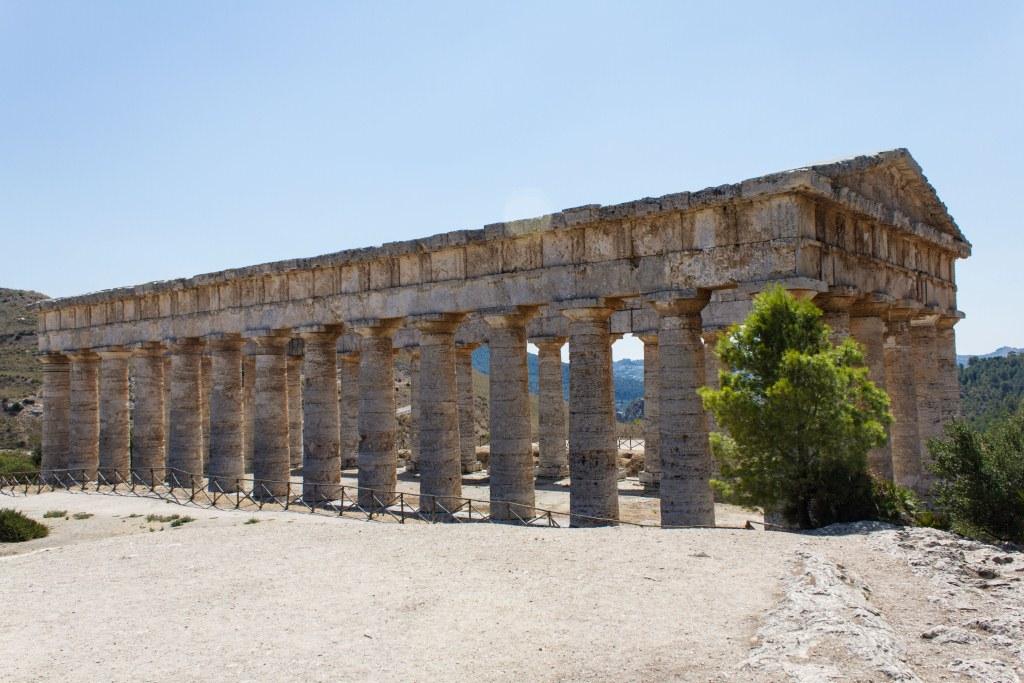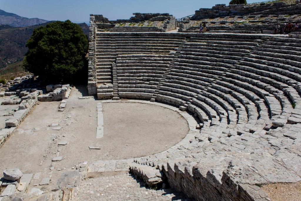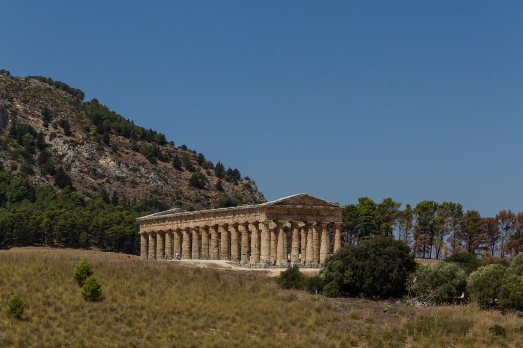 Segesta is another site of ancient ruins. With a very complete big temple at the bottom and a well restored theatre at the top of a steep bit of mountain. The original builders were apparently an offshoot of the Trojans, so they did not have to pay tributes to Rome.