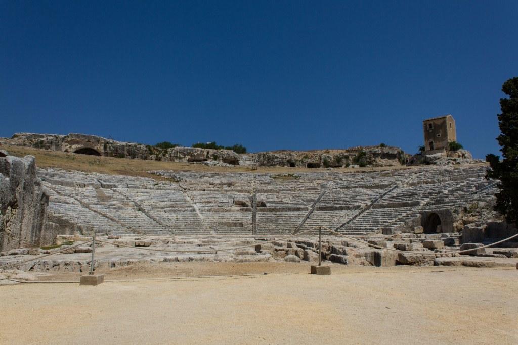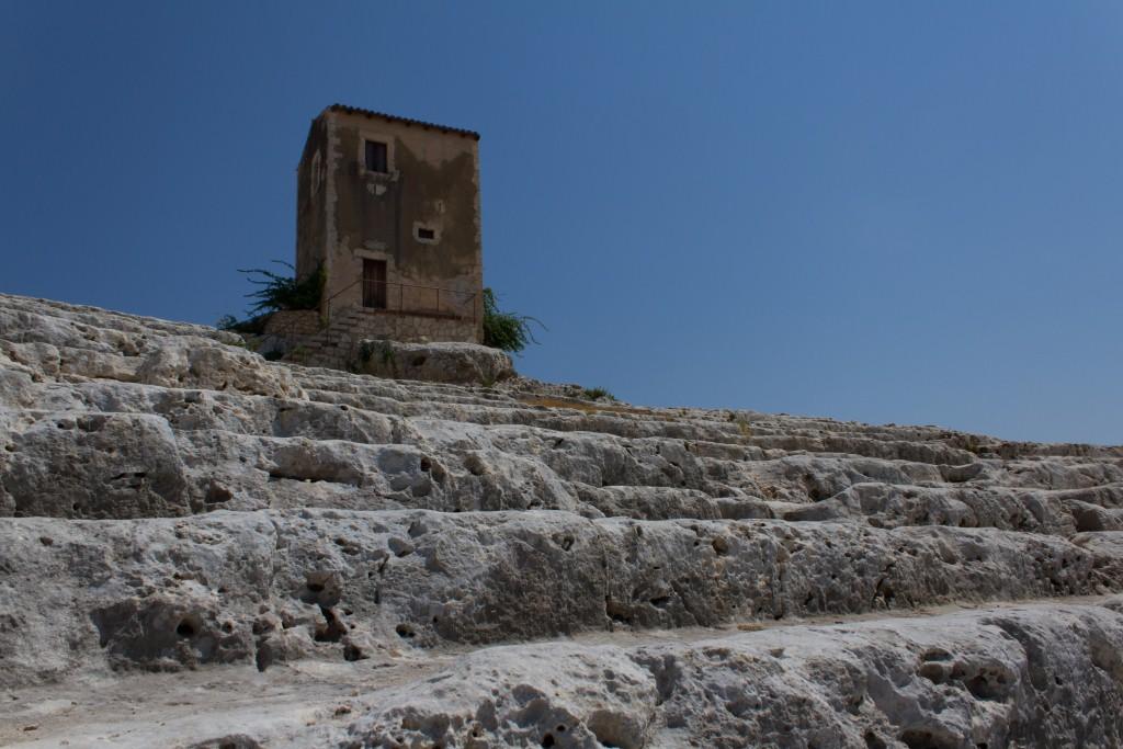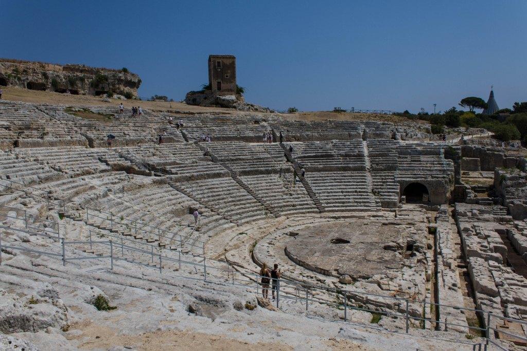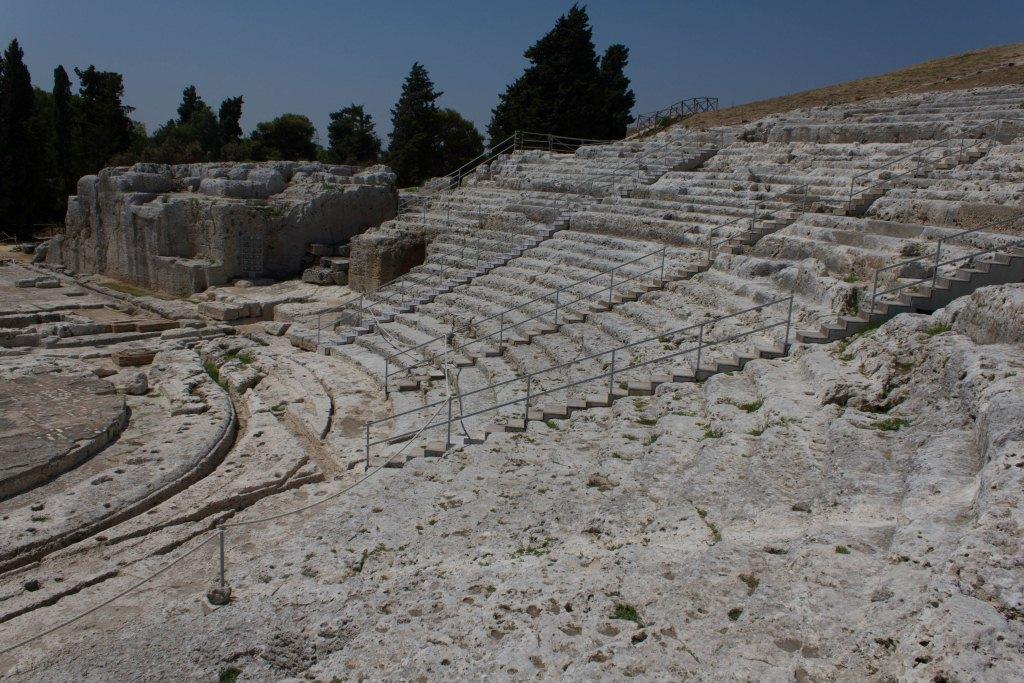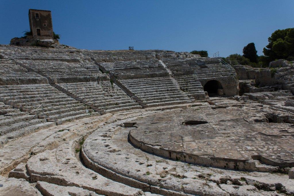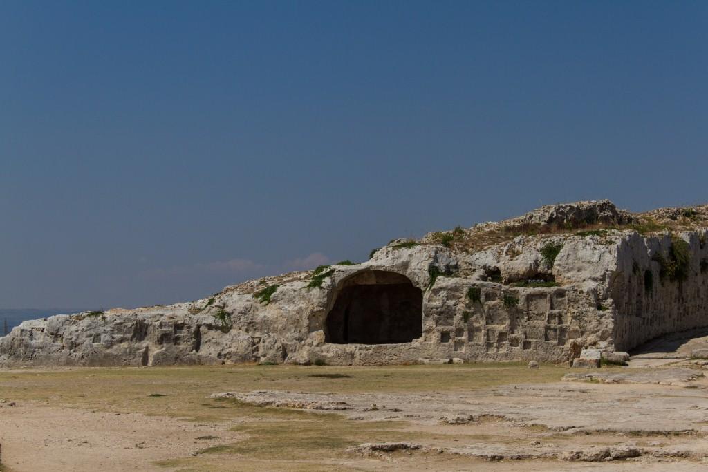 The other part of Syracuse of note is the Neopolis which were Greek (latterly redeveloped by the Romans) ruins. The building material is the local white volcanic rock, quarried locally which makes it picturesque, particularly with numerous votive niches and troglodytes all over the place. It is also supposedly the burial location of Archimedes the guy who liked a screw and jumped out the bath shouting YOU-REEK. Something to do with the water being too hot no doubt.As an ancient town of note, Siracusa had an amphitheatre, temples and various other structures. The theatre is the most imposing of those remaining.