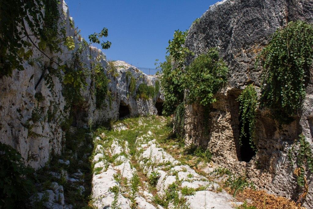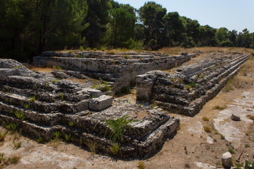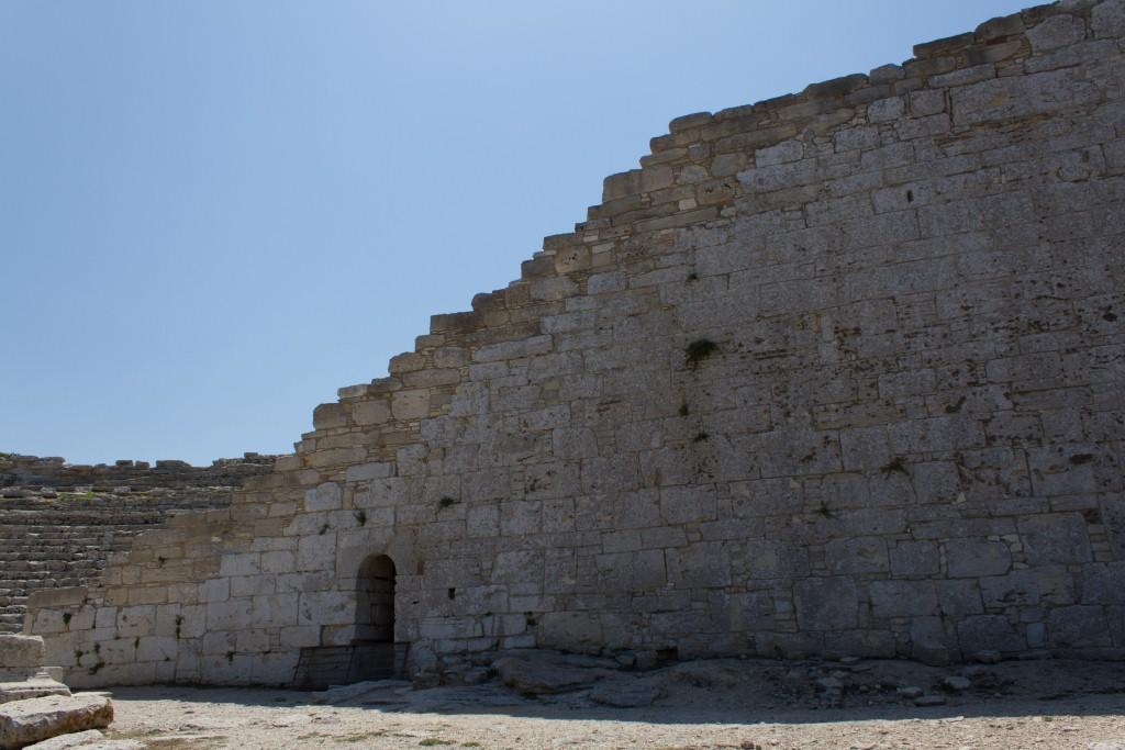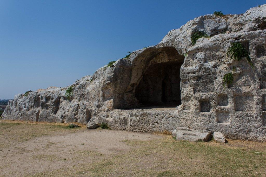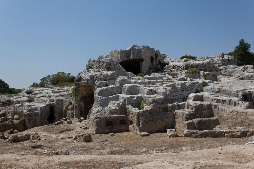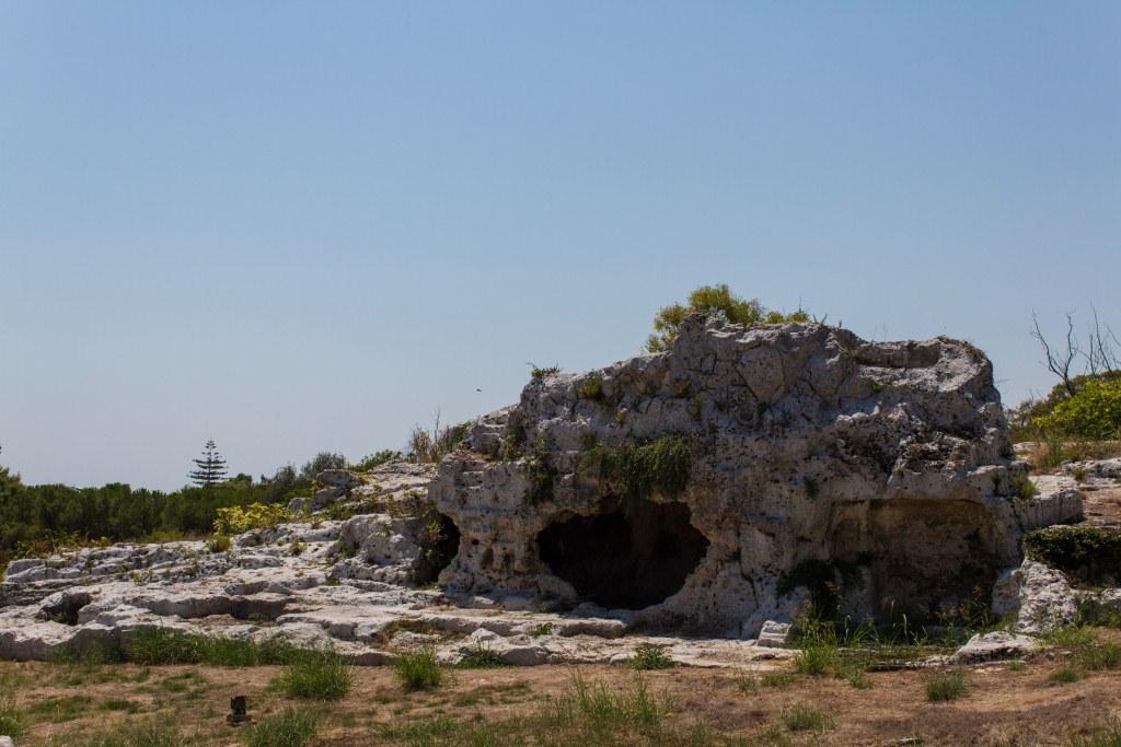 The other part of Syracuse of note is the Neopolis which were Greek (latterly redeveloped by the Romans) ruins. The building material is the local white volcanic rock, quarried locally which makes it picturesque, particularly with numerous votive niches and troglodytes all over the place. It is also supposedly the burial location of Archimedes the guy who liked a screw and jumped out the bath shouting YOU-REEK. Something to do with the water being too hot no doubt.As an ancient town of note, Siracusa had an amphitheatre, temples and various other structures. The theatre is the most imposing of those remaining.