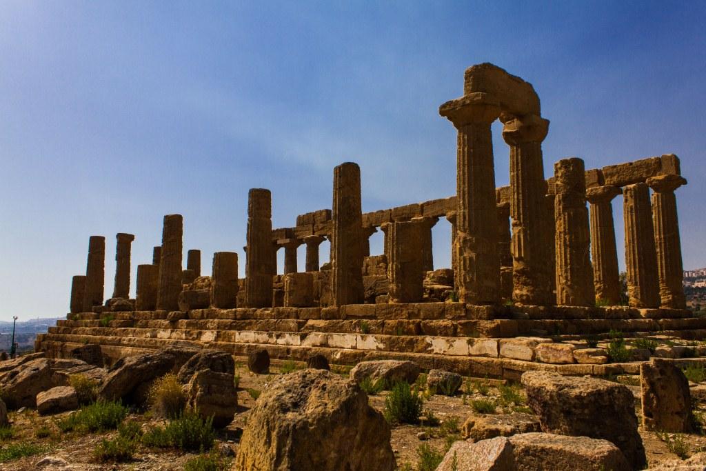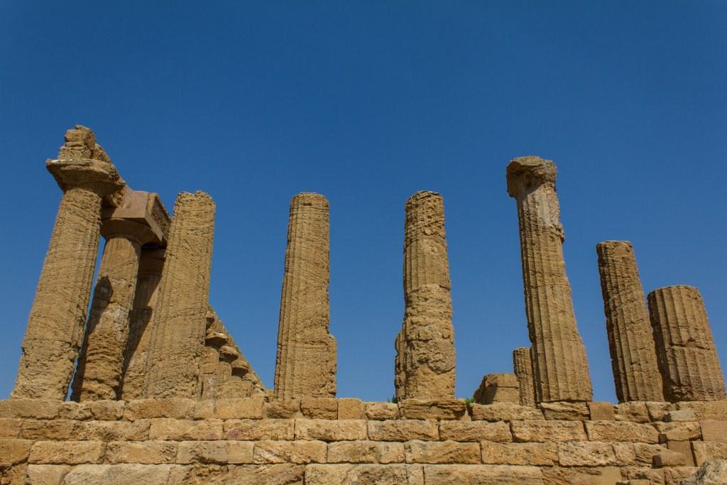 From Palermo we went to Agrigento which has some fabulous Greek ruins in the Valle dei Templi nearby. The temples names have changed names a couple of times, as apparently the archaeologists make new discoveries, reassigning their deity. The first one is much more complete and consequentially imposing.