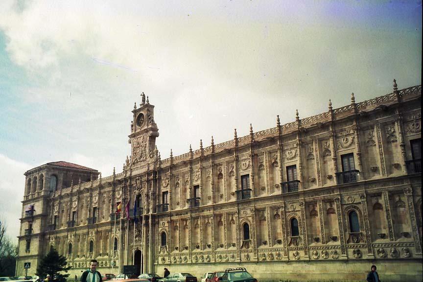 Spain is one of my favourite countries in Europe, the people, the countryside, the architecture and the women are all world class.I spent several months in Spain supposedly studying Business at the Universidad de Leon. My associates and I made a point of trying to study the culture more closely than the course texts.I spent a few months living in a city called Leon in the Northwest of the country. The city is attractive with a fantastic cathedral (photo 1) making an attractive view from our flat window (photo 2). The city is very old, with old cobbled streets in parts (photo 3) and a nice main square in the old part of town (photo 4). The Hostal San Marcos (photo 5) in Leon is a fantastic hotel with a museum and cloisters, making the hotel itself seem more like a museum than a hotel. All over the city, storks nest on the rooves and on steeples (photo 6). All this splendour was not however reflected in our accommodation as our coal heated flat suffered from major damp problems and mold (photo 7).