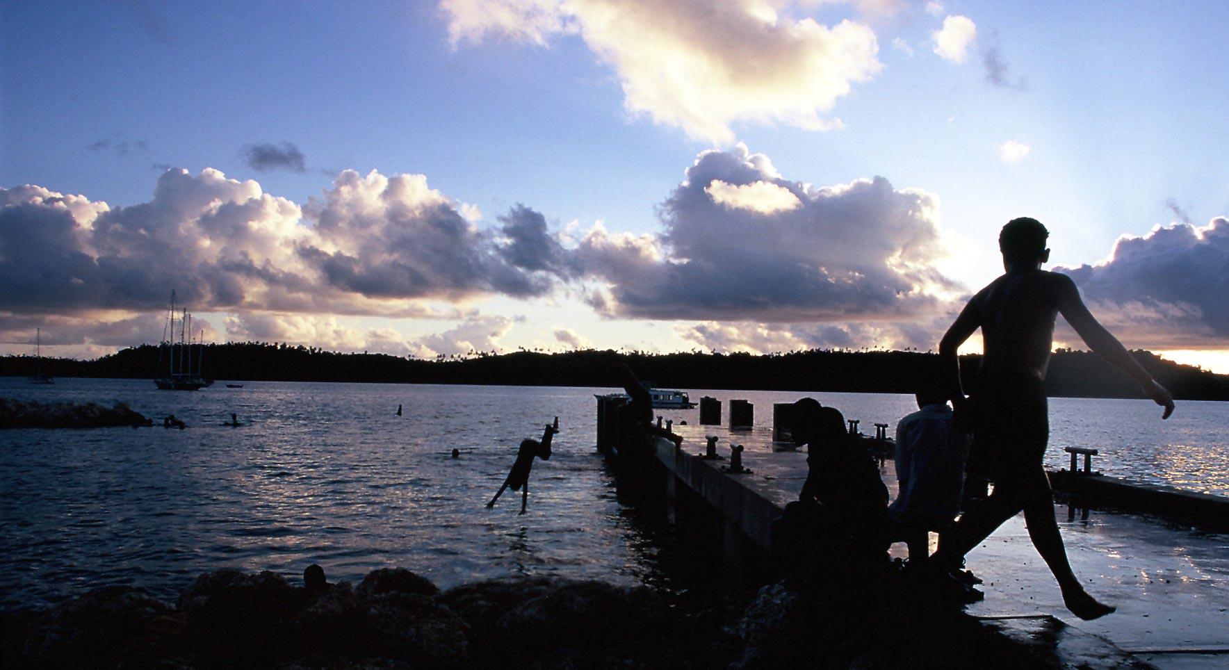 My reason for going to Vava'u was mainly for diving, though the scenery was also nice. In the late afternoon the local kids would dive from the jetty as the sunset (photos 1-4).