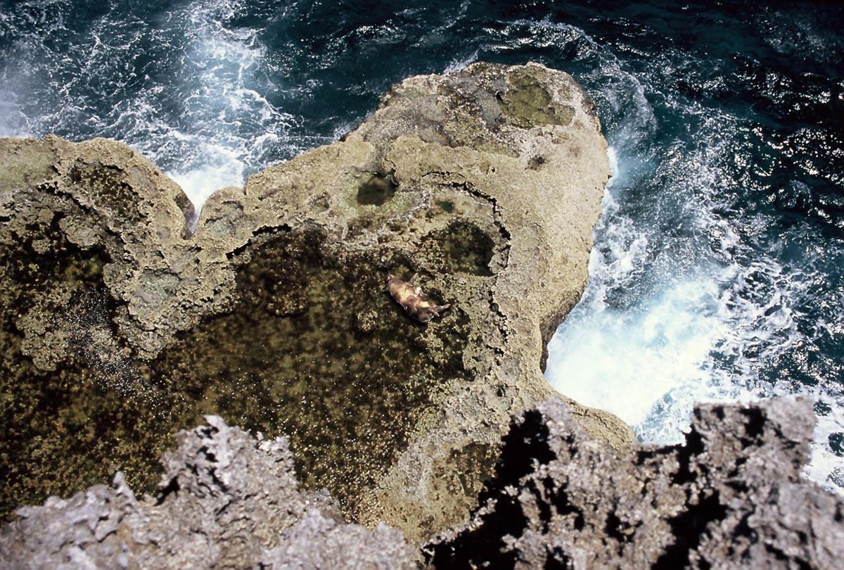 Tonga has sites of natural beauty, looking along the coastline, there is a natural arch (photo 1), attractive cliffs and blowholes (photos 2 & 4). It all seems to have been a bit much for the pig that decided to commit suicide over one of the picturesque cliffs (photo 3).