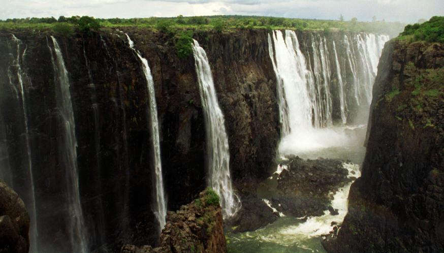 I crossed into Zimbabwe just near the Victoria Falls (photo 1). The falls are spectacular, about a mile wide, the result of the slow moving upper Zambezi river dropping a hundred metres into a narrow gorge. From that point on the river is much faster moving, being one of the world's premier white water rafting locations. As many of the adventurous activities were either unappealing or very expensive I decided just to do a combined game flight and flight over the falls in a little Piper Cub. This was interesting as one could see huge herds of elephants and Rhinos. It was also a good opportunity to take aerial photographs of the falls (photo 2). As I was walking back from the falls I also saw a bushbuck, a shy antelope (photo 3).